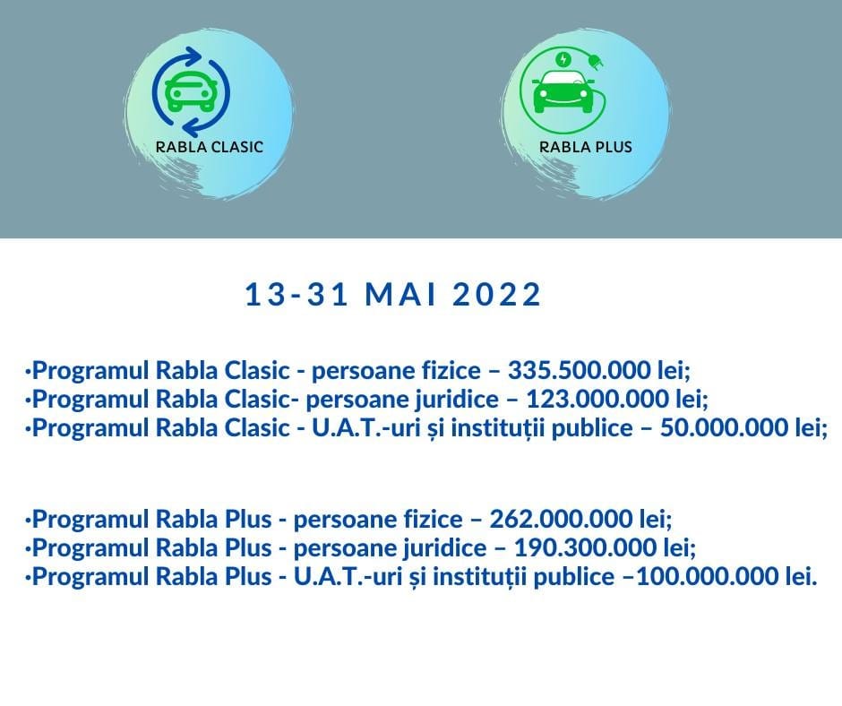 În cadrul Programului Rabla Clasic, prima de casare este de 6.000 lei, respectiv 9.000 lei în cazul predării a 2 autovehicule uzate, la care se pot adăuga următoarele ecobonusuri, astfel: ecobonus în valoare de 1.500 lei, pentru autovehiculul nou, exceptând motocicletele, al cărui sistem de propulsie generează maximum 120 g CO2/km în sistem WLTP; ecobonus […]