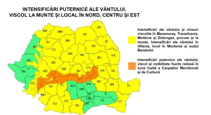 Interval de valabilitate: 28 decembrie, ora 02 – 29 decembrie, ora 10. Fenomene vizate: intensificări ale vântului, precipitații predominant sub...