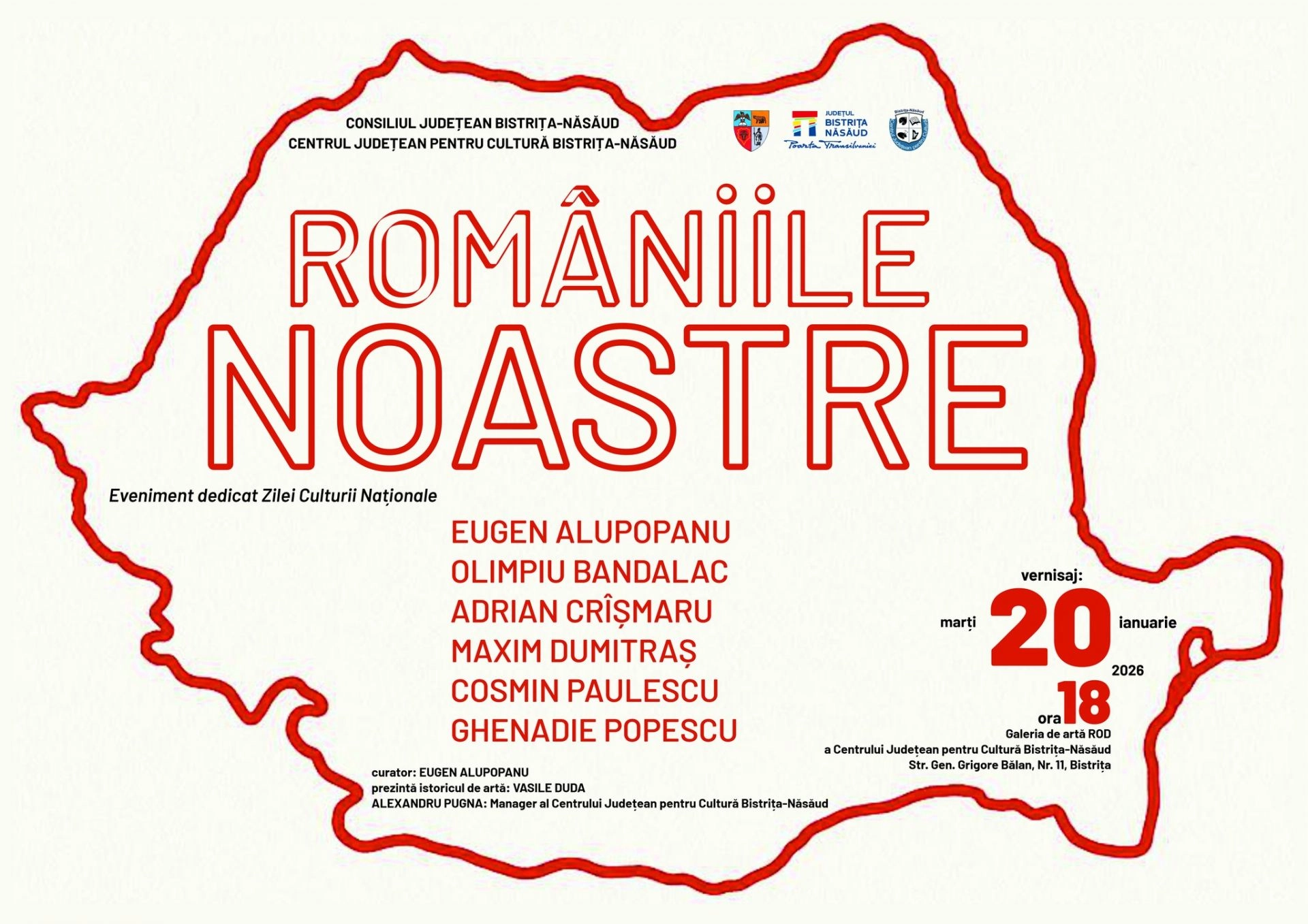 Consiliul Județean Bistrița-Năsăud, prin Centrul Județean pentru Cultură Bistrița-Năsăud, organizează marți, 20 ianuarie 2026, de la ora 18:00, l...