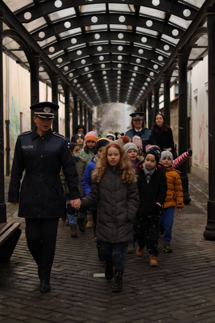 Totodată, a fost o ocazie excelentă pentru a pune în practică regulile de circulație învățate, iar elevii, împreună cu doamna învățătoare și polițiștii au parcurs traseul de la școală și până la Căminul pentru Persoane Vârstnice, cu mare atenție la semnele de circulație și respectând regulile de traversare a străzii.