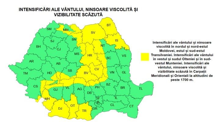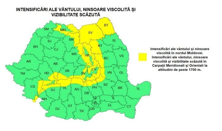 Mai multe localități din județul Bistrița-Năsăud se află sub cod galben.