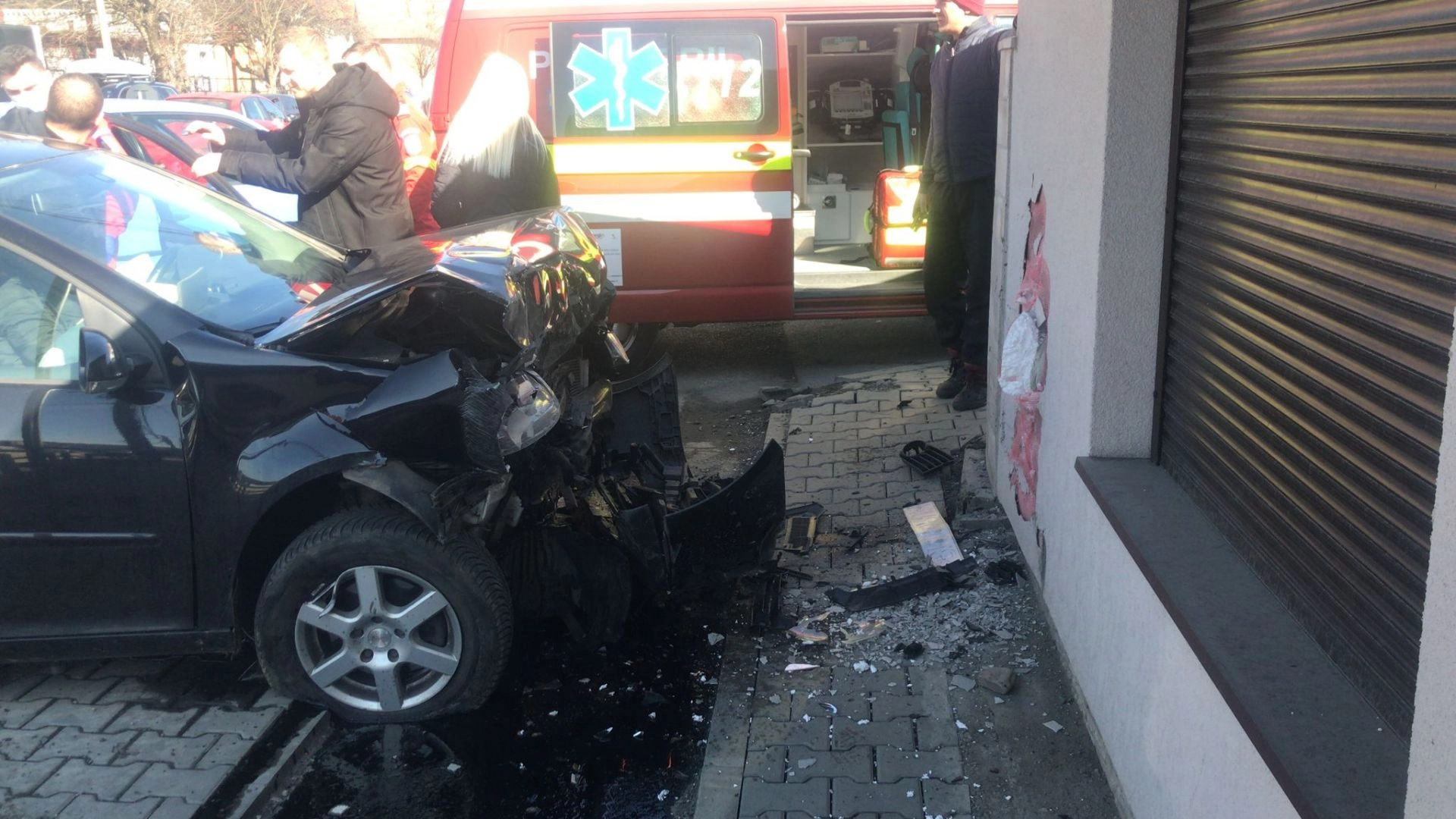 Accident în Bistrița, pe Libertății. O șoferiță a intrat cu mașina într-o casă (FOTO)