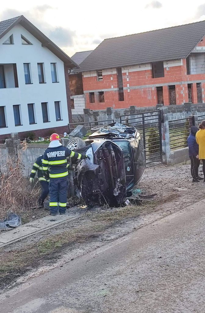 Accident în Cepari. Un tânăr s-a răsturnat cu mașina (FOTO)