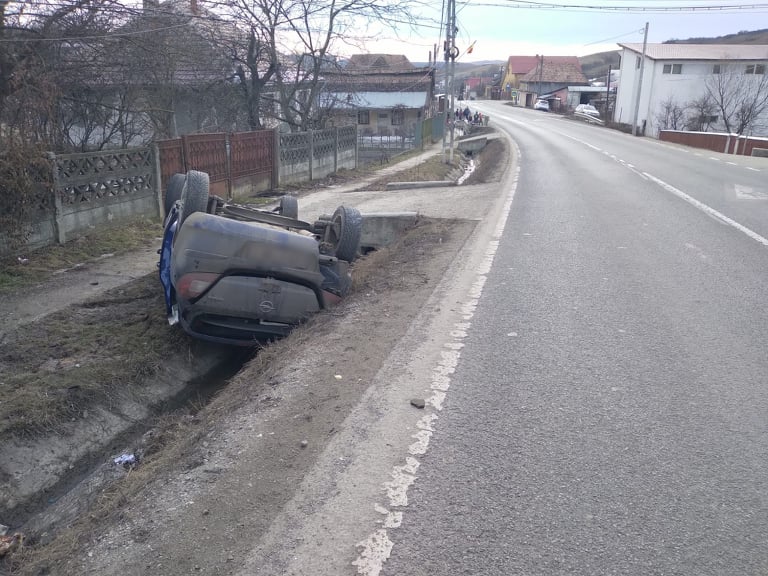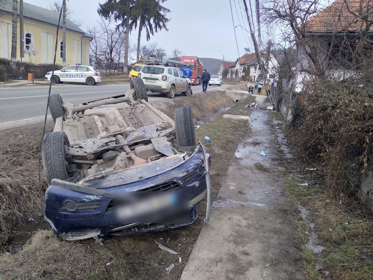Accident în Herina. Un tânăr s-a răsturnat cu mașina (FOTO)