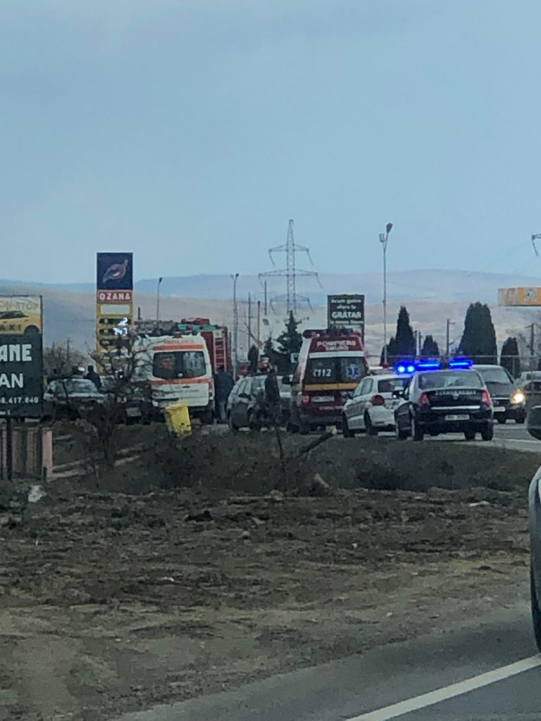 Este vorba de o coliziune între cinci autoturisme, în accident fiind implicate șapte persoane: cinci adulți și doi copii. O femeie a primit îngrijiri medicale la fața locului. Celelalte persoane au refuzat transportul la spital.