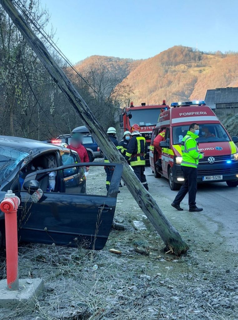 Accident în Parva. O mașină a doborât un stâlp (FOTO)