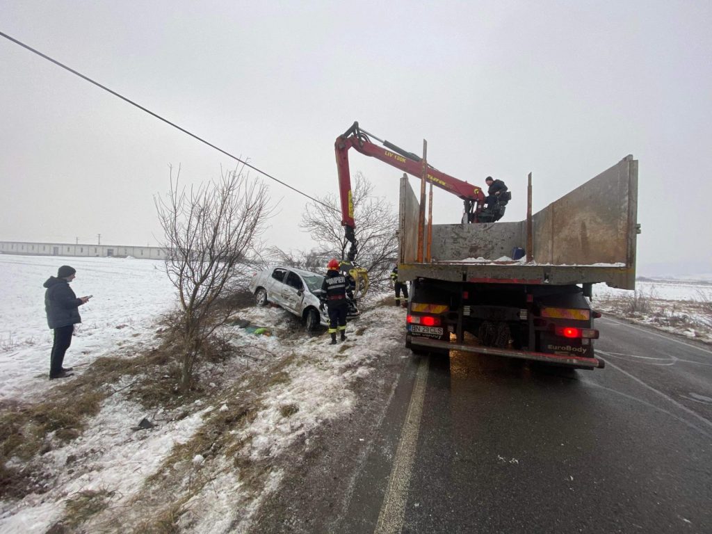 Accident între Chiuza și Săsarm. O mașină s-a răsturnat (FOTO)