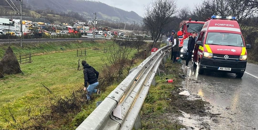 Cele două persoane implicate în accident au refuzat transportul la spital. Pompierii au asigurat masurile de apărare împotriva incendiilor, respectiv paramedicii primul ajutor la locul solicitării.