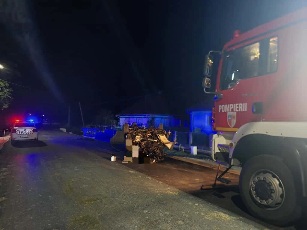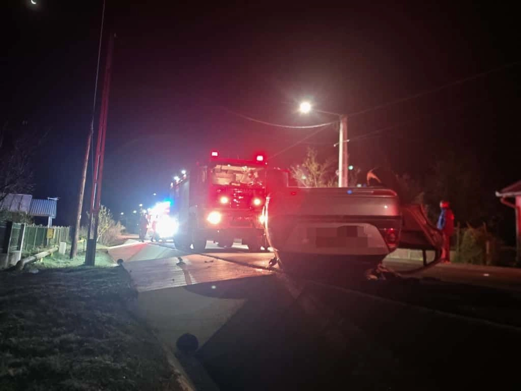 Accident rutier, cu o mașină răsturnată (FOTO)