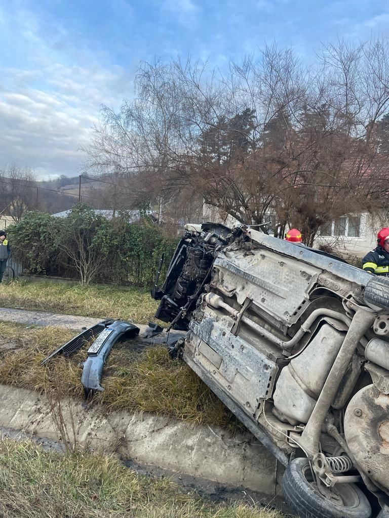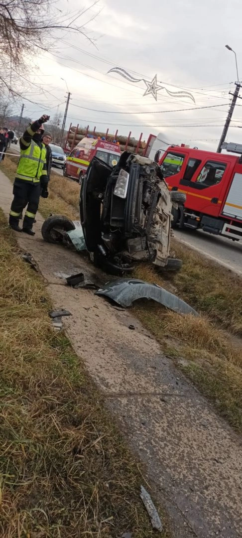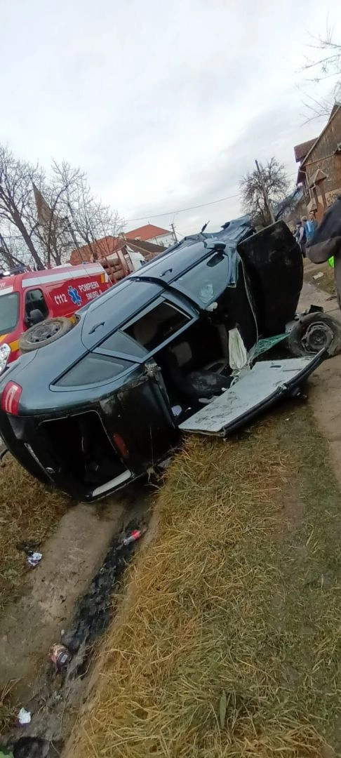 Accident rutier grav! O mașină s-a răsturnat (FOTO)