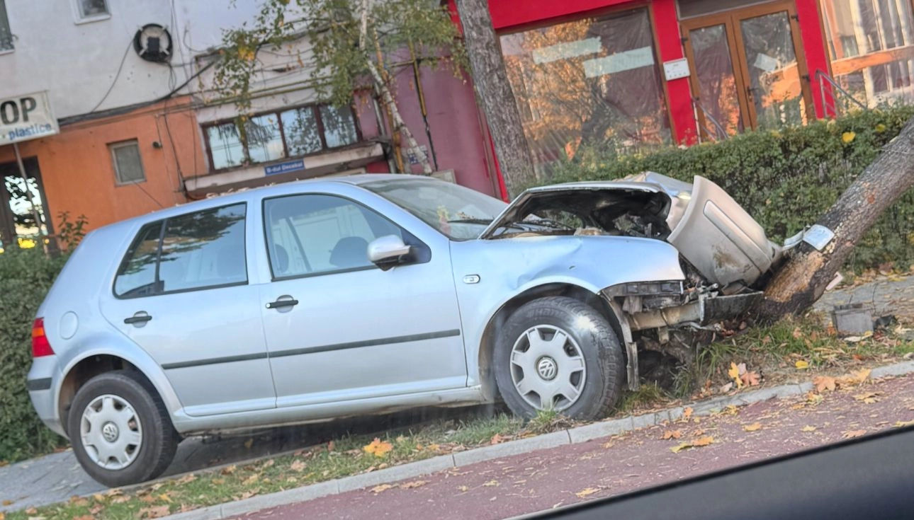 Accident rutier în Bistrița. A intrat cu mașina într-un copac (FOTO)