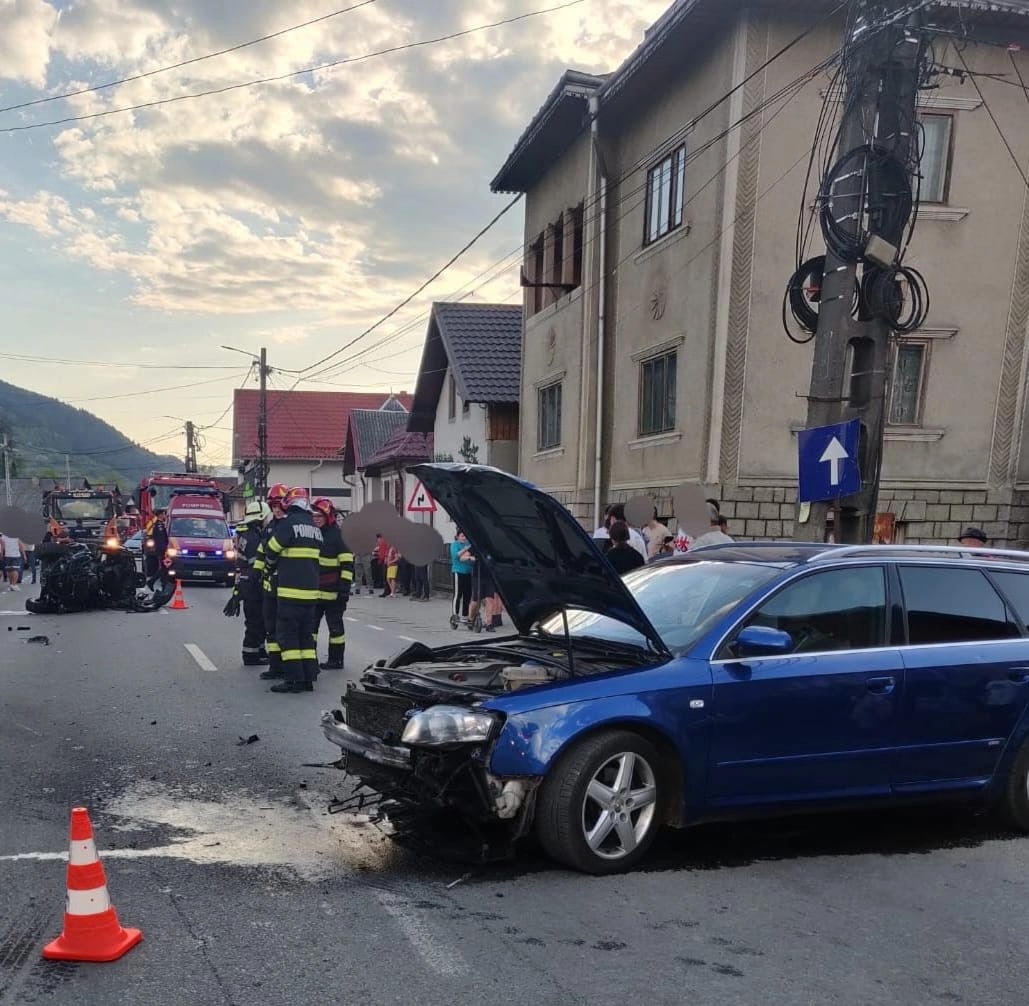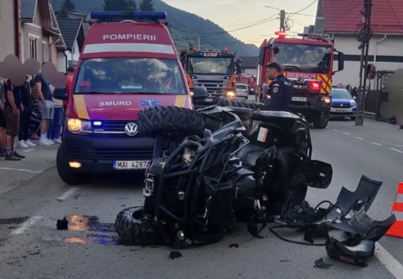 Accident rutier în Maieru. O mașină a intrat într-un ATV (FOTO)