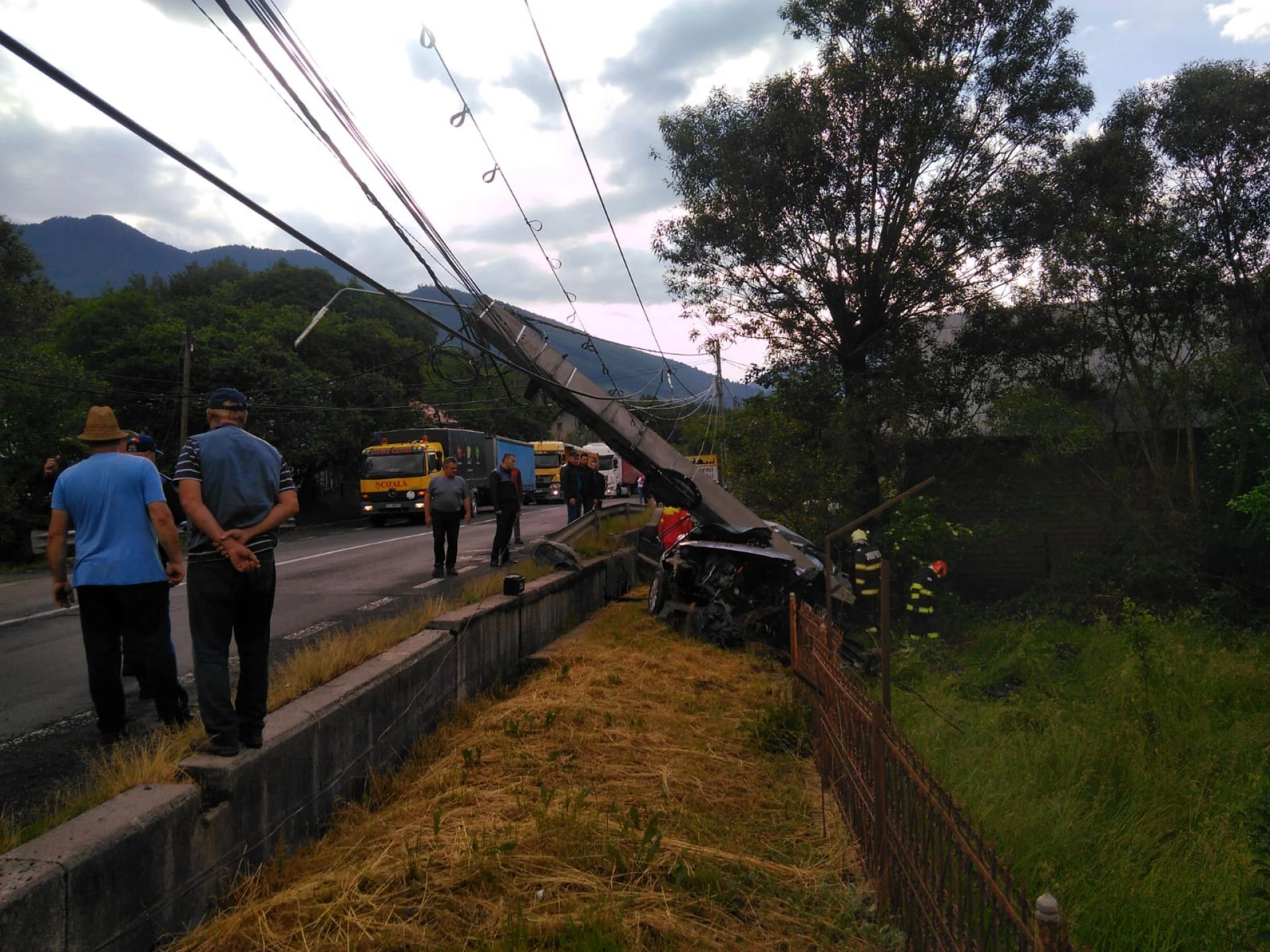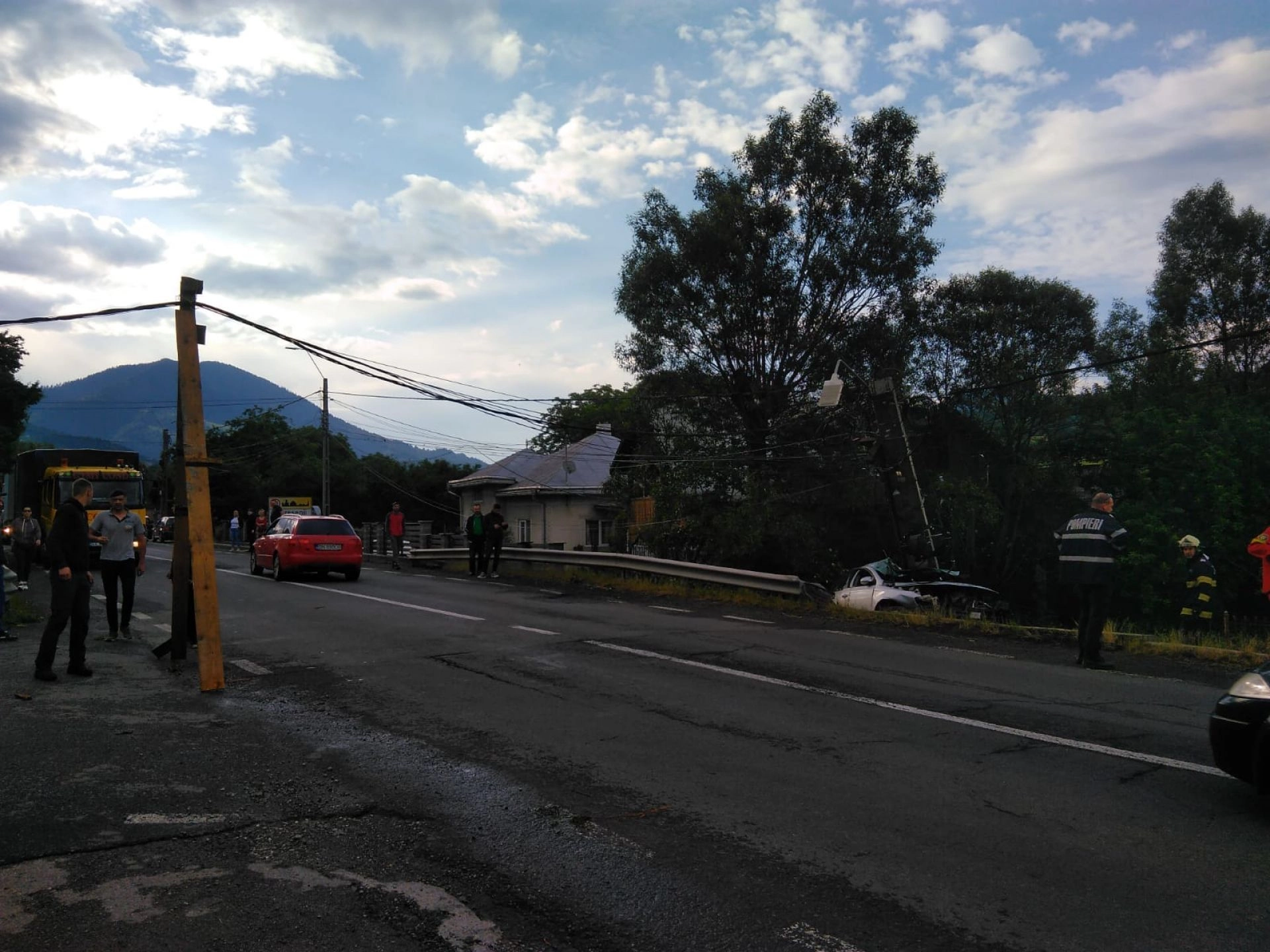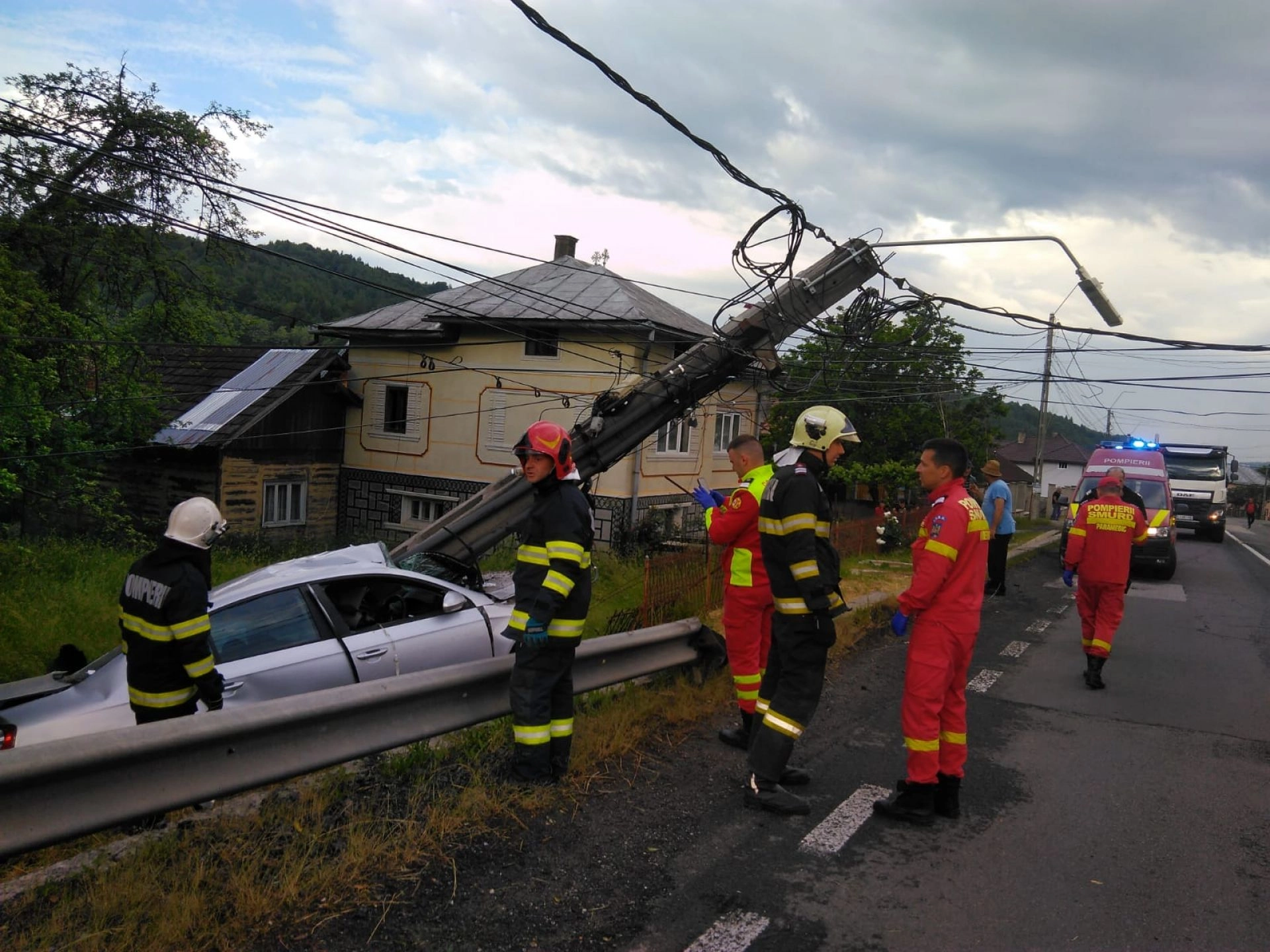 Accident rutier în Mureșenii Bârgăului. A rupt un stâlp cu mașina (FOTO)
