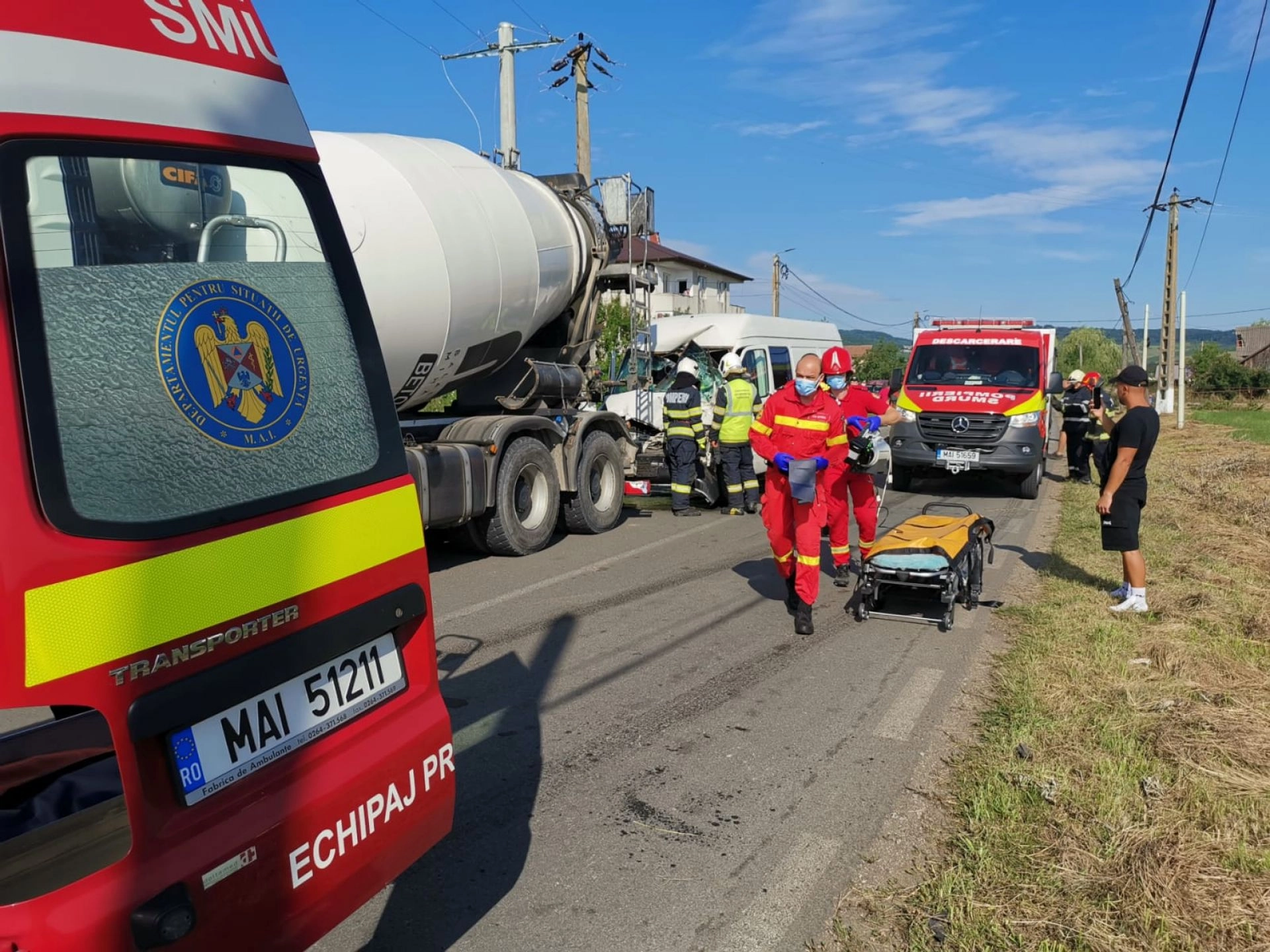 Pompierii militari au intervenit cu echipaje SMURD și descarcerare la un accident rutier produs pe raza localității Orheiu Bistriței.