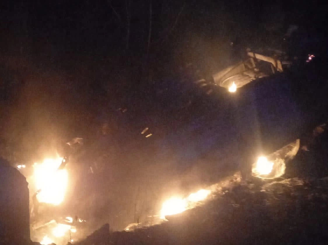 ACCIDENT RUTIER. O mașină s-a răsturnat, apoi a luat foc!