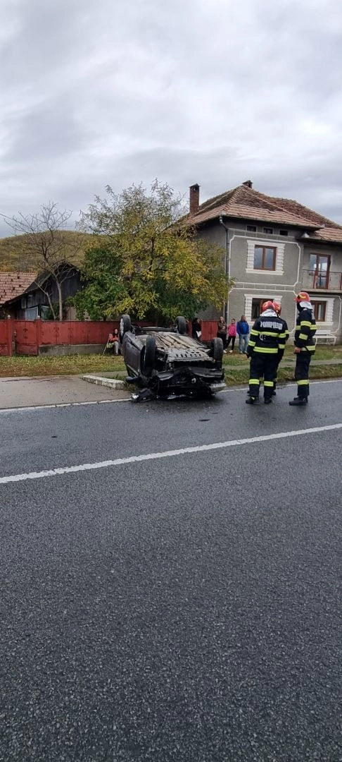 ACCIDENT RUTIER. O șoferiță s-a răsturnat cu mașina (FOTO)