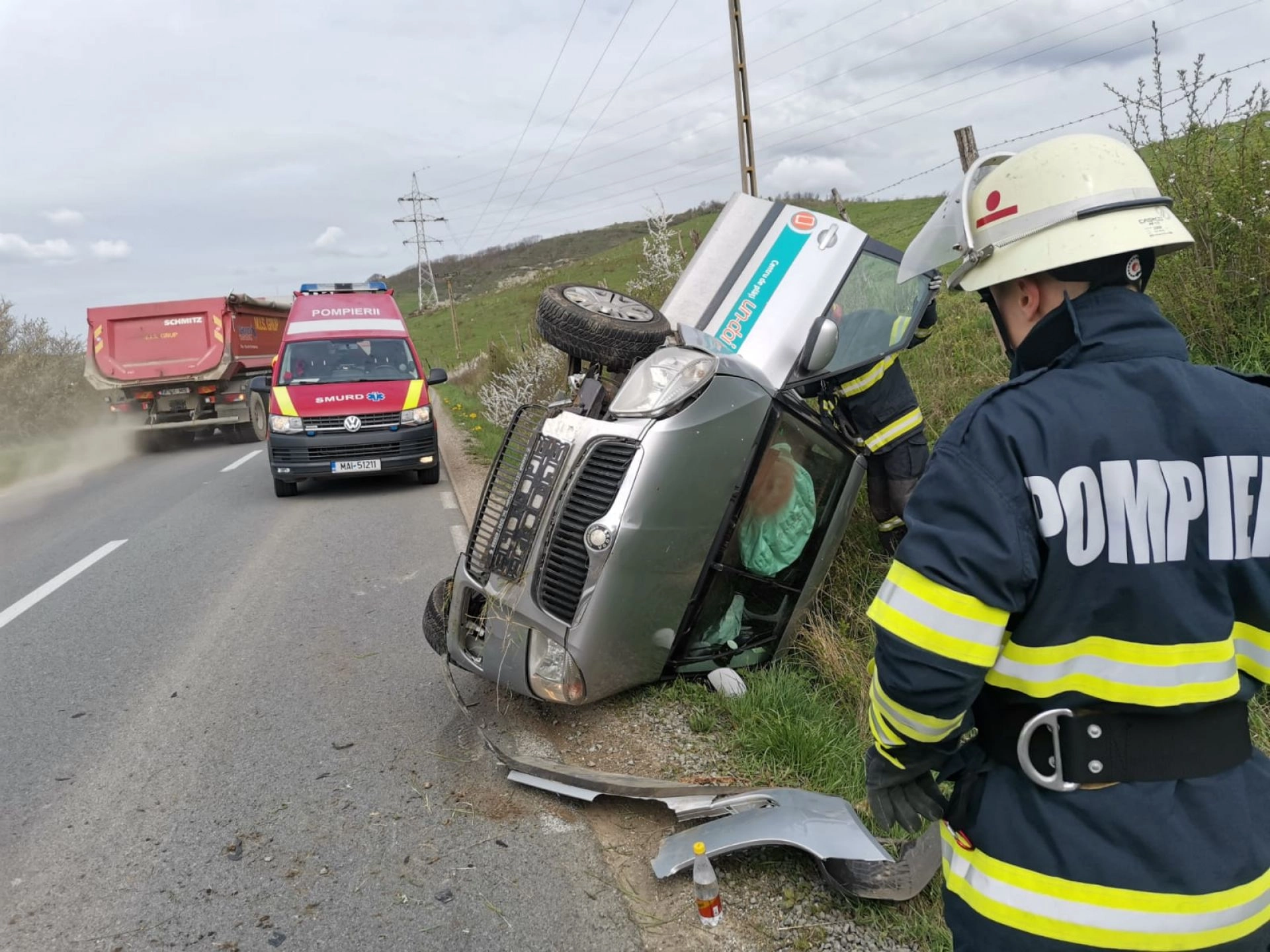 ACCIDENT RUTIER! O tânără s-a răsturnat cu mașina (FOTO)