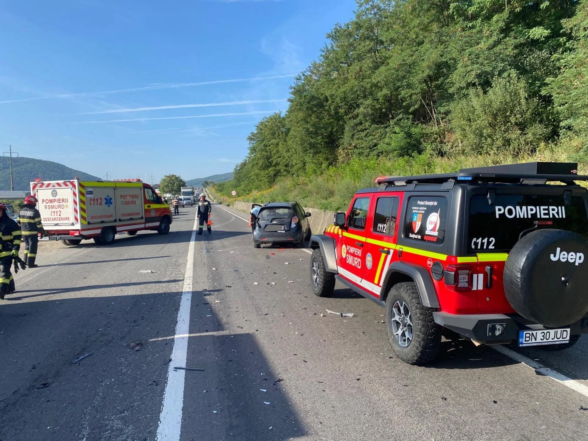 În această dimineață, polițiștii din cadrul Poliției orașului Beclean au intervenit la un accident rutier semnalat pe Drumul Național 17, între Crainimat și Viisoara.