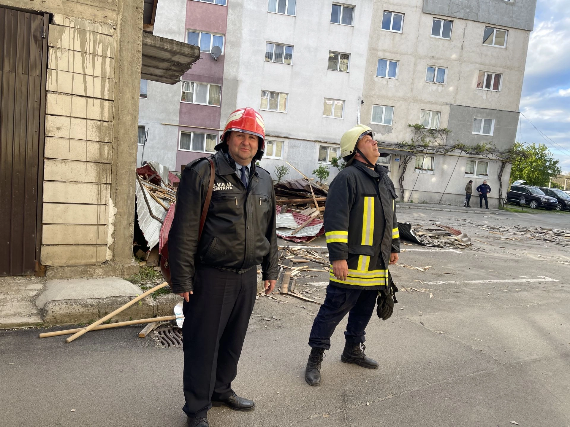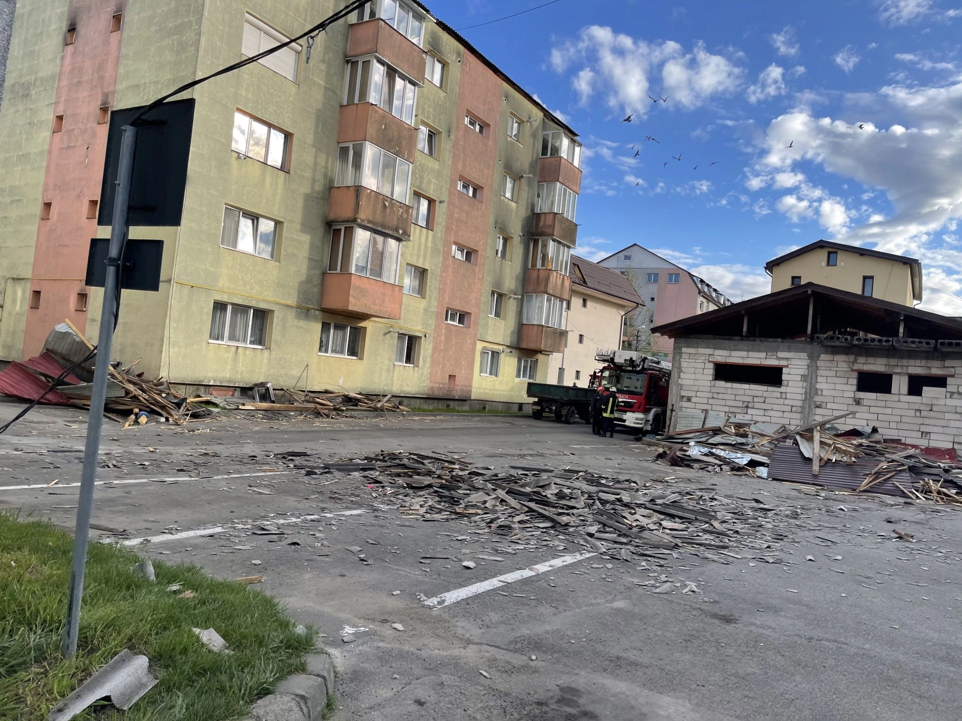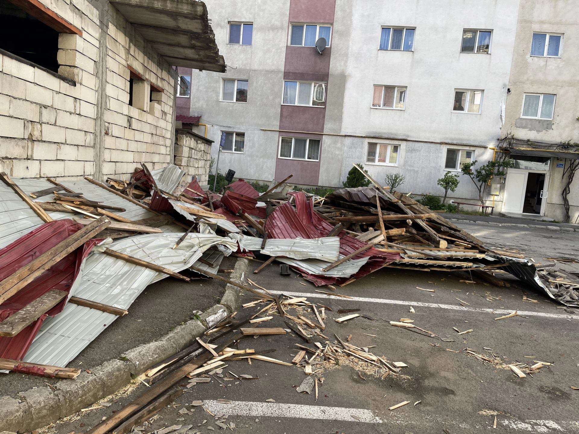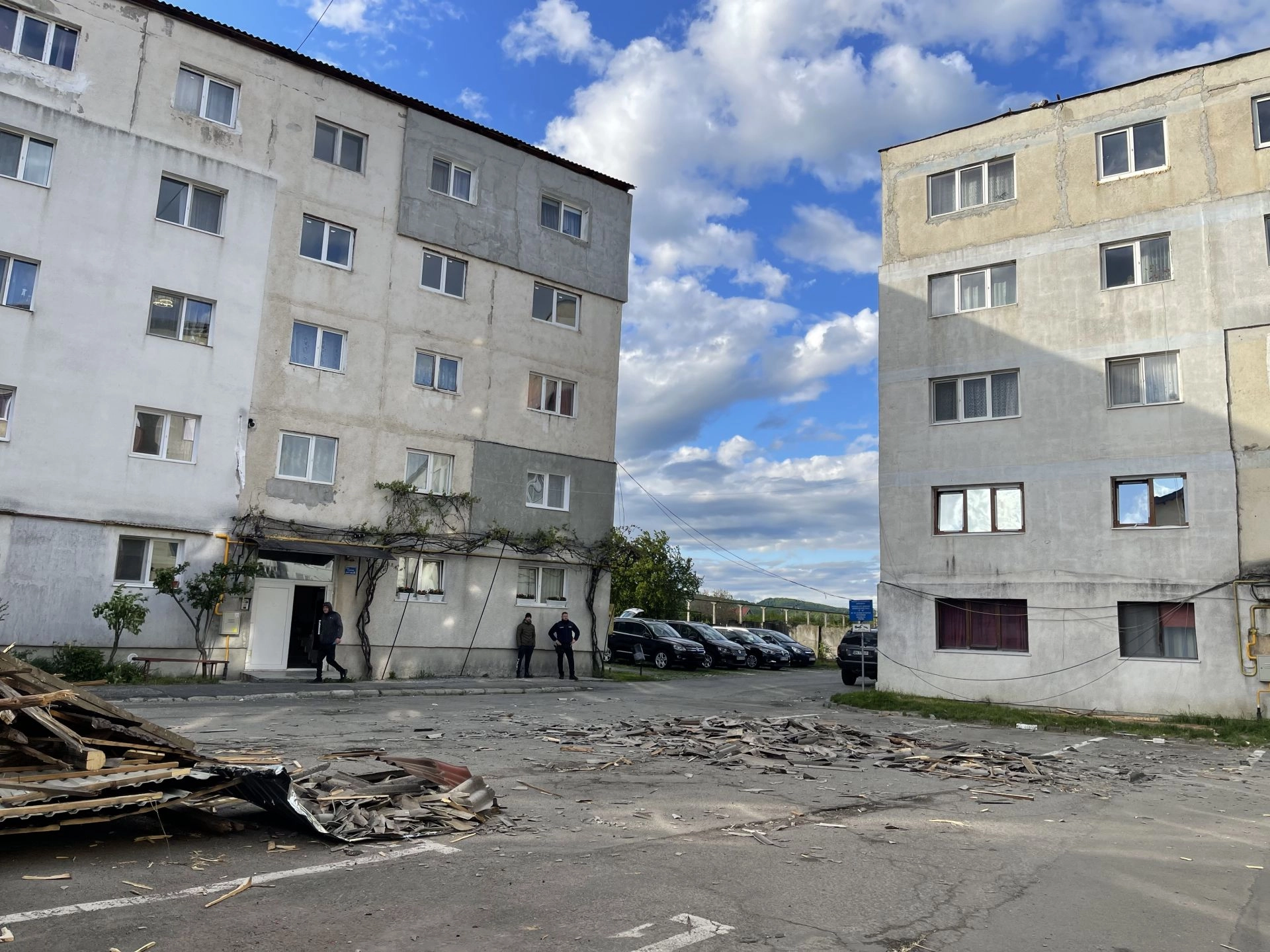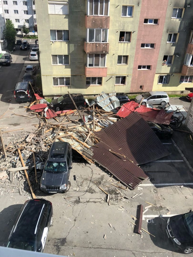 Acoperișuri de blocuri, luate de vânt în Bistrița. Mașini distruse (FOTO)