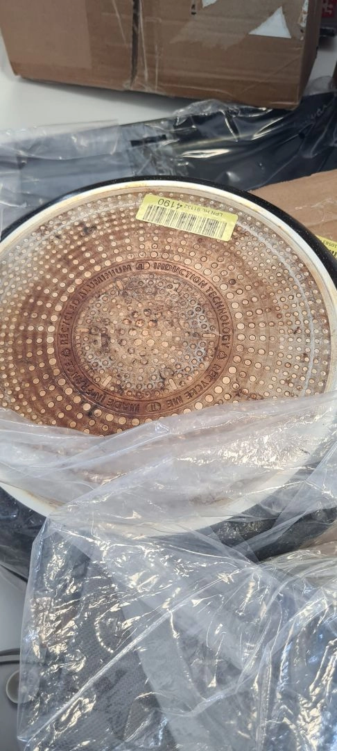 Pasionații de cumpărat tigăi vor fi în extaz la Amazone, unde să vând chiar tigăi folosite de alții, la prețuri de aproximativ 100 de lei bucata. Una dintre ele era "prăjită" tare pe fund și în interior, dar era de firmă.