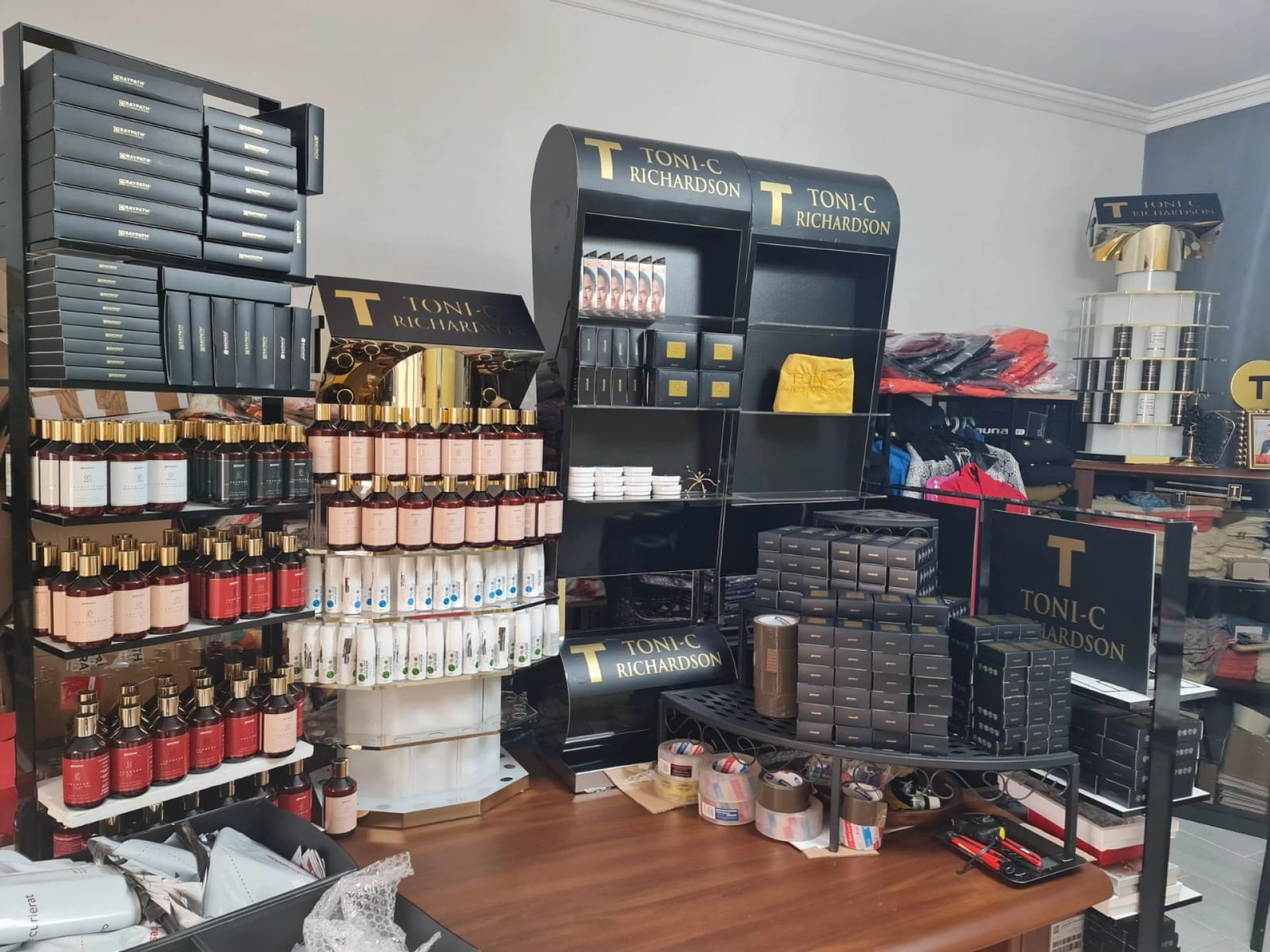 Simultan, Ancuța Cârcu își dezvoltă și propria afacere vestimentară, cu hainele și accesoriile realizate sub brandul propriu Toni-C Richardson