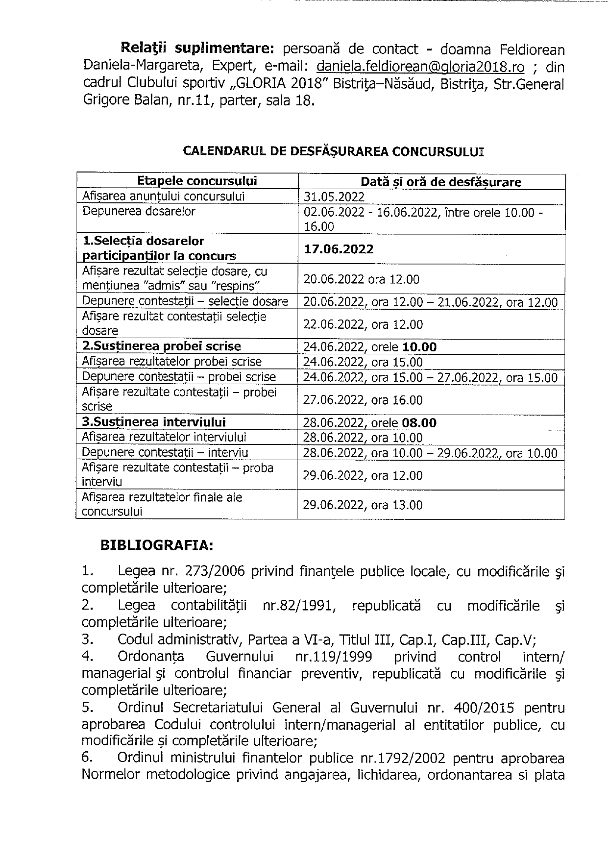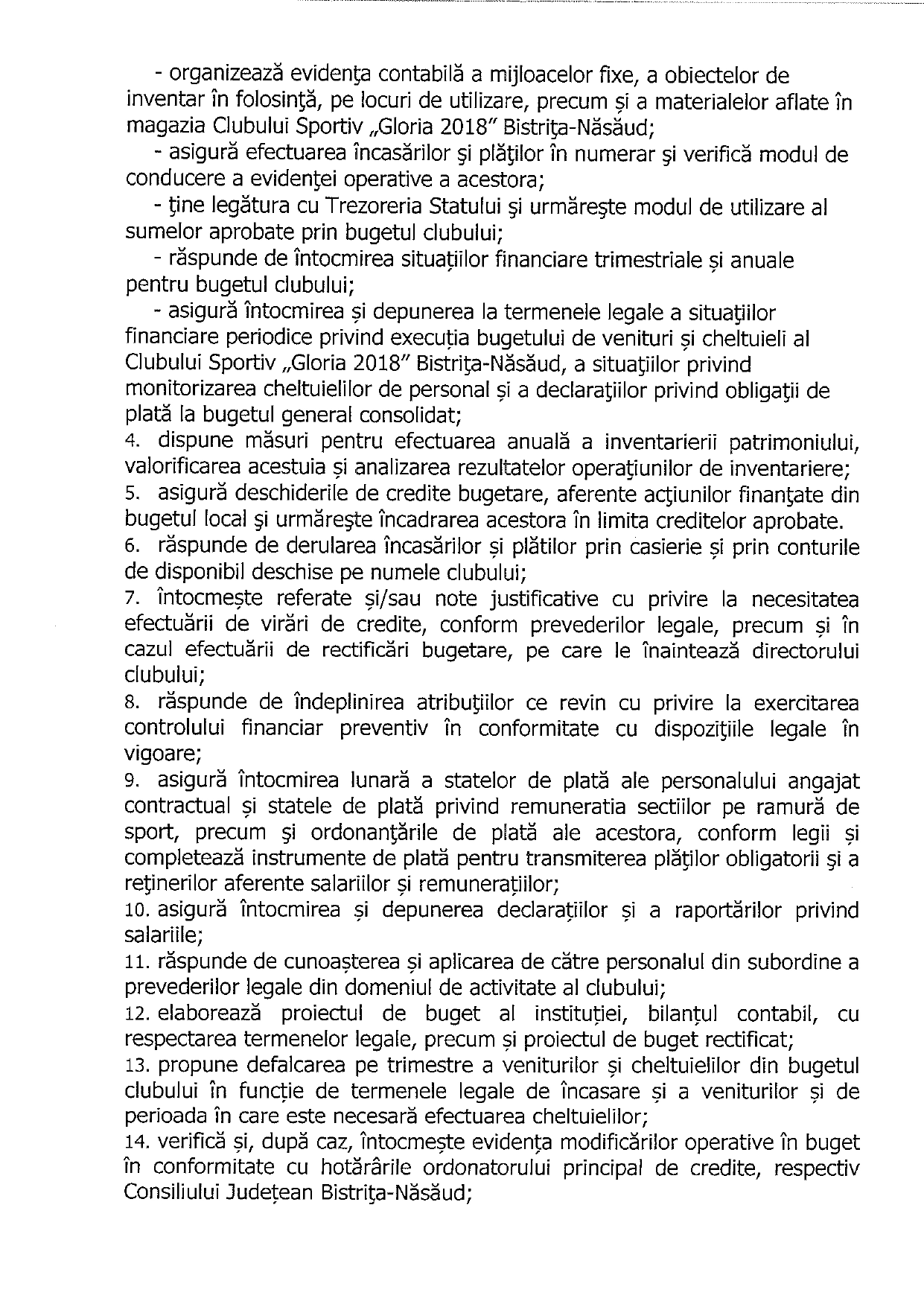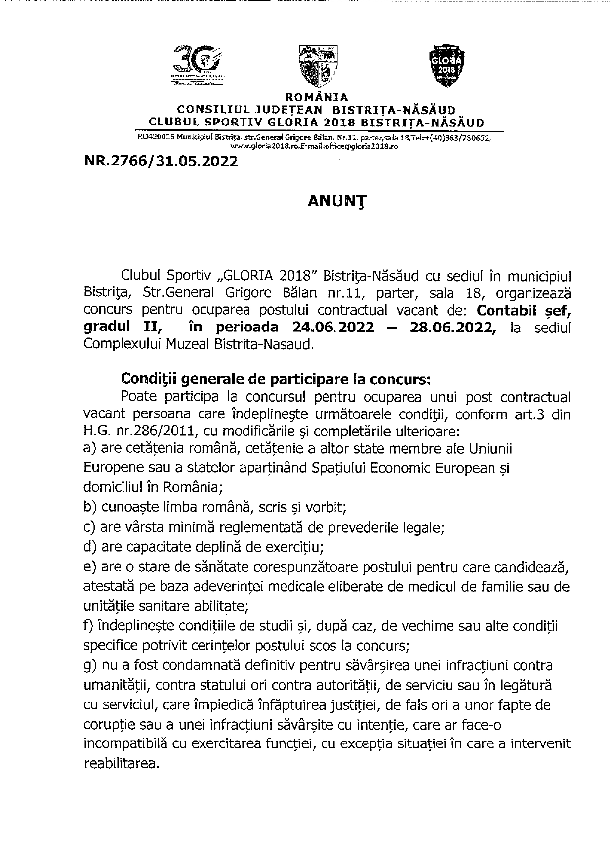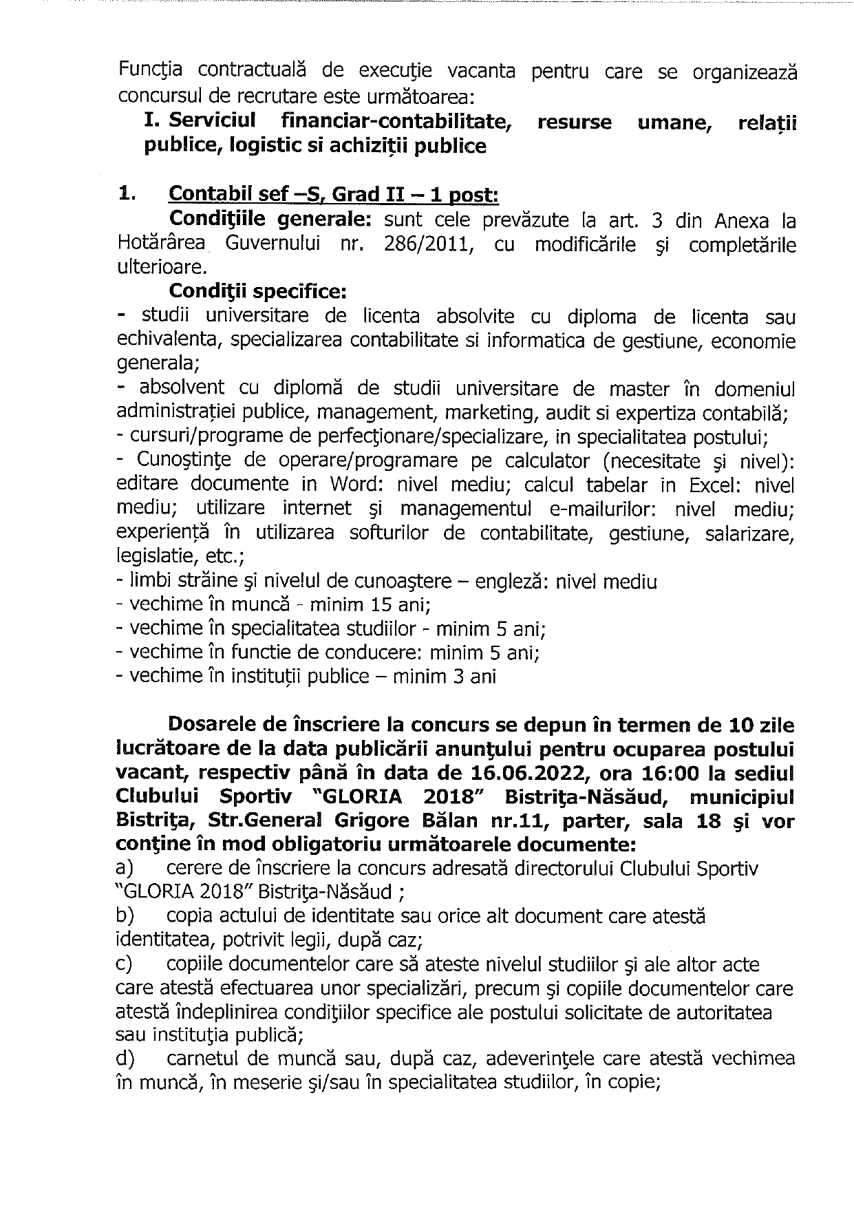 CS Gloria 2018 Bistrița-Năsăud angajează contabil șef.