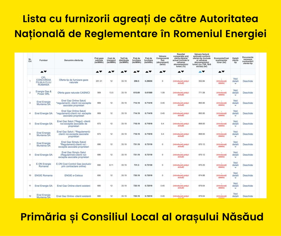 ANUNȚ. În atenția năsăudenilor care încă nu au contractat un nou furnizor de gaze naturale