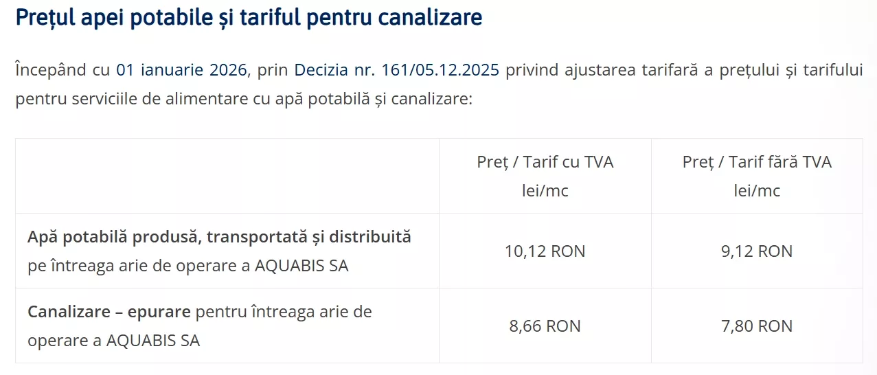 În același timp, reprezentanții companiei precizează că se află în curs de elaborare strategia de tarifare pentru intervalul 2028–2032, urmărindu-se identificarea unor soluții sustenabile care să permită o poziționare mai bună a Aquabis în clasamentul național al tarifelor în anii următori.