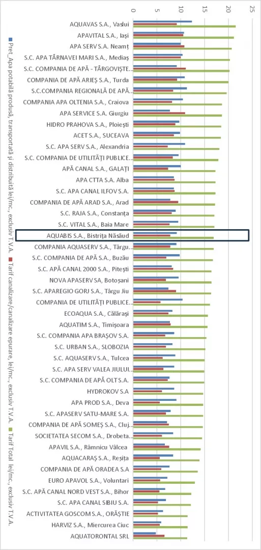 Aquabis SA, pe locul 20 la nivel național în clasamentul tarifelor apă-canalizare