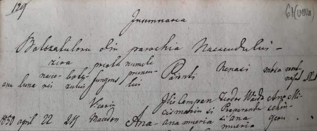 Consemnarea nașterii Anei Câmpeanu (numele real al poetei) în Registrul parohial greco-catolic de stare civilă – Năsăud și câteva considerații ale acad. Iuliu Moisil despre marea iubire a poetului Mihai Eminescu. Sursa: Arhivele Naționale Bistrița-Năsăud, Colecția Iuliu Moisil