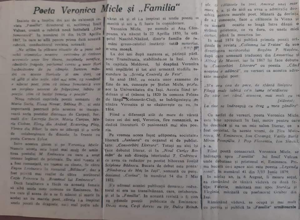Arhivele Naționale Bistrița-Năsăud: 172 de ani de la nașterea poetei Veronica Micle