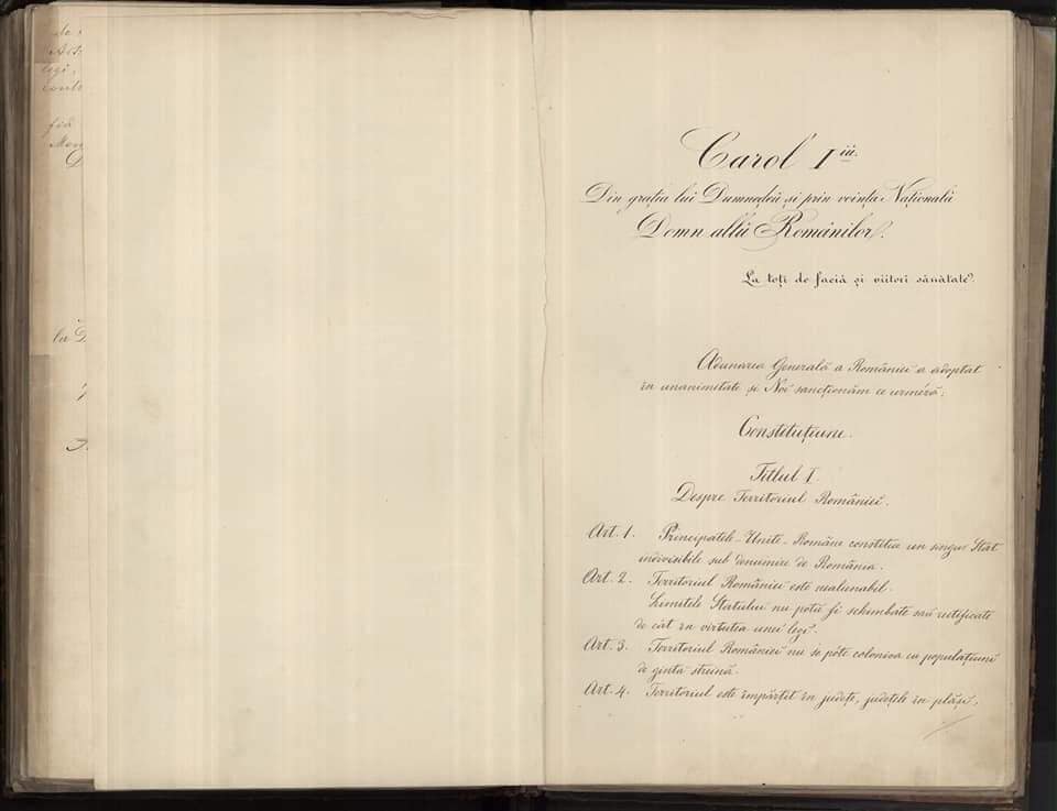 La 1 iulie 1866 a fost promulgată, de către Carol I, prima constituție propriu-zisă a României, adoptată după modelul actului fundamental al Belgiei din anul 1831, aceasta fiind cea mai longevivă Constituție din istoria ţării noastre – fiind în vigoare timp de 67 de ani.