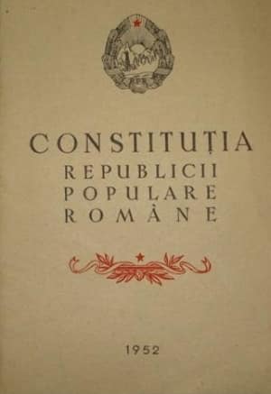 Constituţia adoptată la data de 24 septembrie 1952, de către Marea Adunare Naţională, a fost denumită de unii istorici ca fiind „Constituţia construirii socialismului”. Aceasta reflecta rolul statului şi al partidului unic în viaţa politică şi socială a ţării. Constituţia începea cu un capitol introductiv în care s-a pus baza existenţei statului român, dependent de URSS, având în cuprins referiri la proprietatea socialistă care a constituit mijlocul economic de aservire a cetăţeanului şi rolul conducător al partidului.