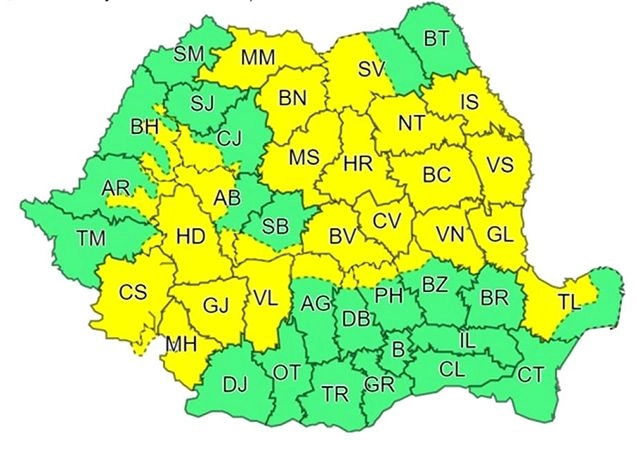 A fost emisă o avertizare meteo RO-ALERT, în municipiul Bistrița.