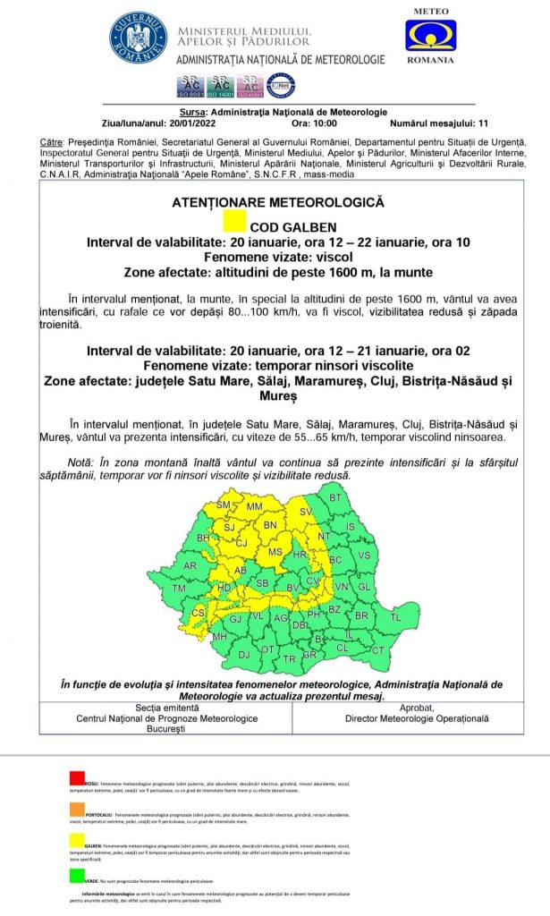 Meteorologii au emis o avertizare cod galben de ninsoare și viscol în mai multe județe din țară, printre care și județul Bistrița-Năsăud.