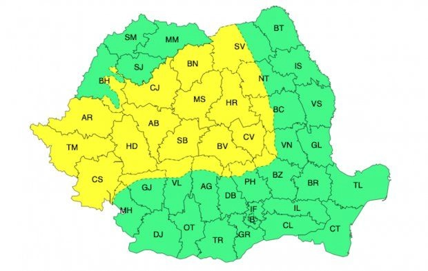 AVERTIZARE METEO - Cod galben de vreme rea în Bistriţa-Năsăud