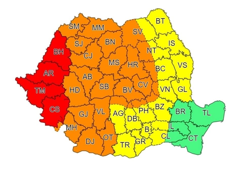 În intervalul menționat în vestul, nord-vestul, centrul și sud-vestul țării, precum și la munte vor fi perioade cu instabilitate atmosferică accentuată. Vor fi intensificări ale vântului, cu rafale de peste 70...90 km/h, vijelii puternice, ploi abundente, frecvente descărcări electrice și pe alocuri căderi de grindină. În intervale scurte de timp sau prin acumulare, cantitățile de apă vor depăși local 40...60 l/mp.