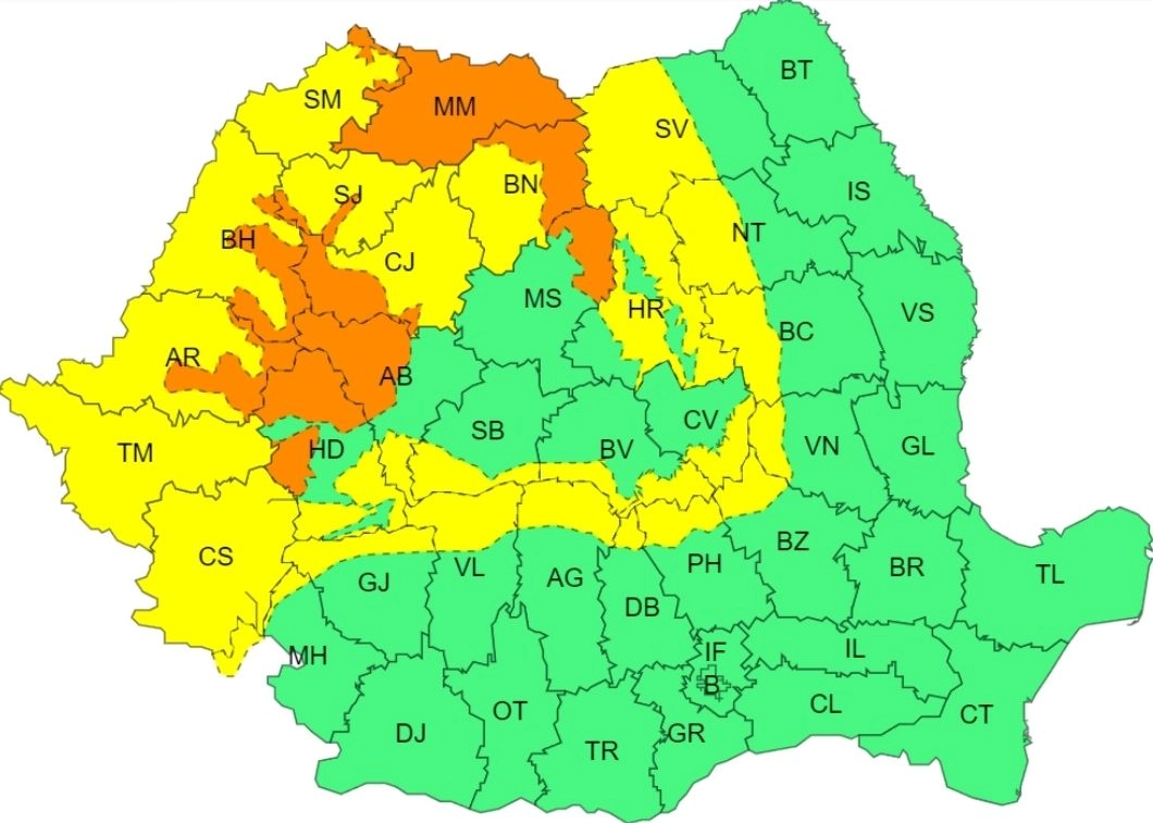 Avertizare meteo de VREME REA: Cod galben și portocaliu de cantități însemnate de apă, în Bistrița-Năsăud