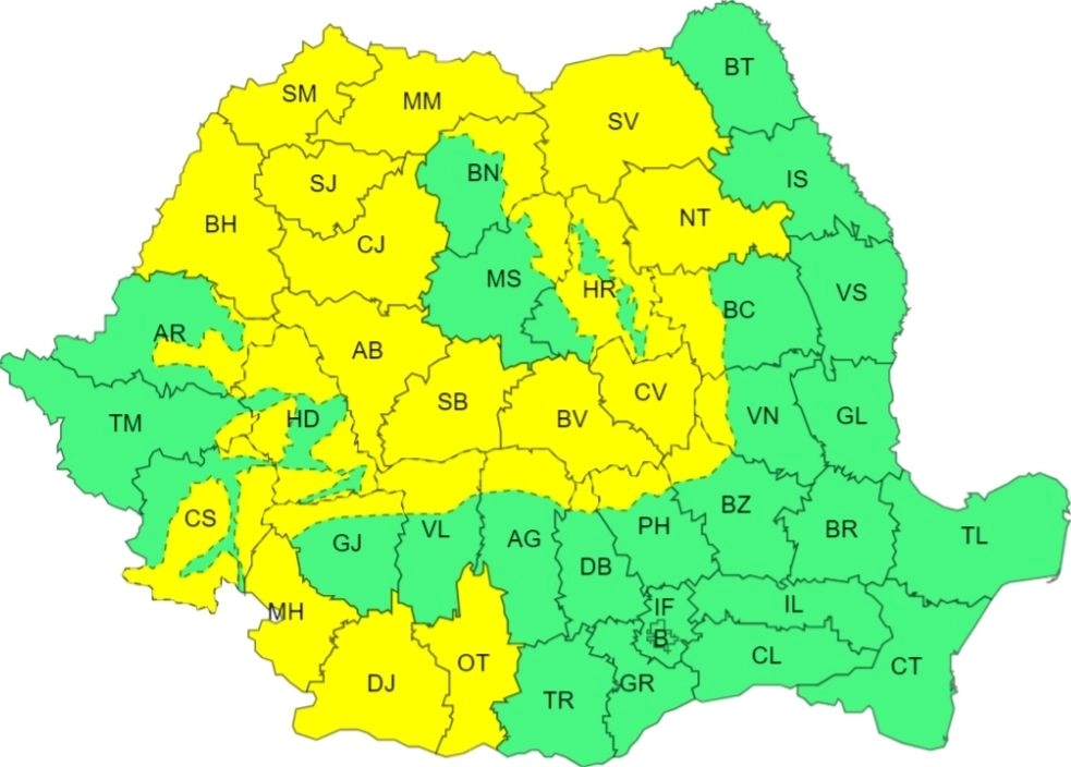 AVERTIZARE METEOROLOGICĂ: Cod galben de vânt puternic