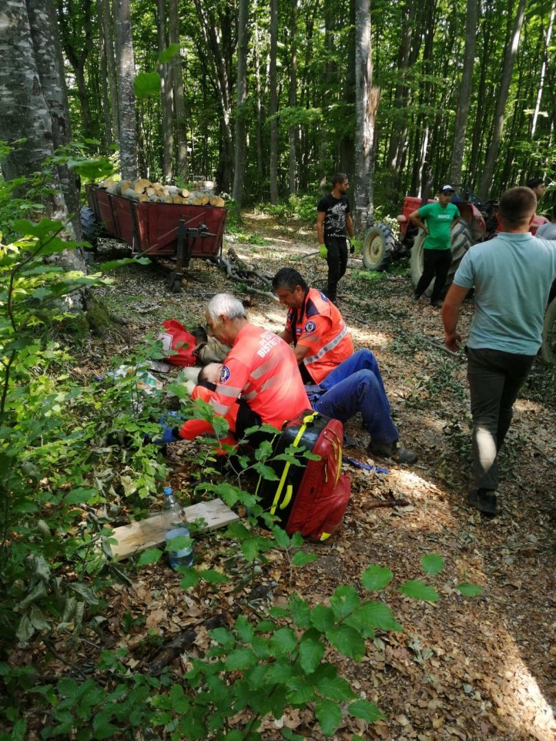 Bărbat rănit după ce s-a răsturnat cu tractorul (FOTO)