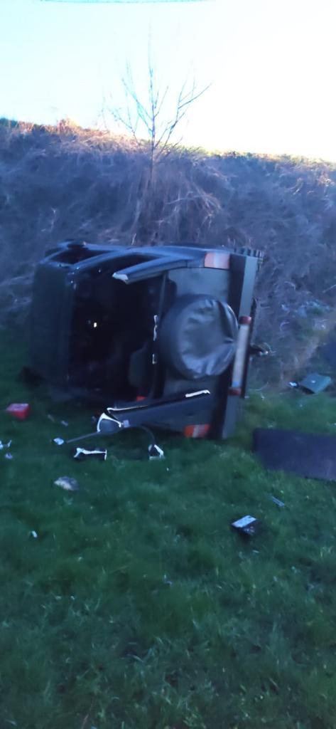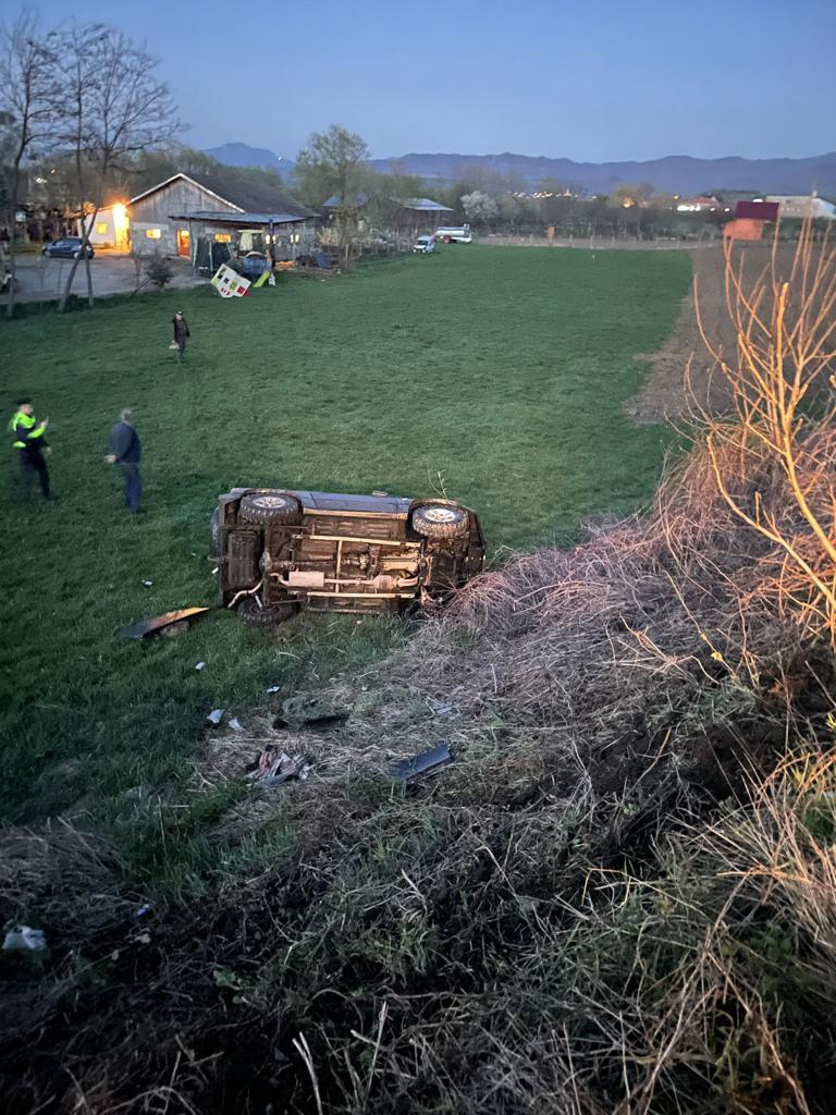 Pe Drumul Județean 172G, în localitatea Livezile, autoturismul urmărit de echipajul rutier a părăsit partea carosabilă și s-a răsturnat.