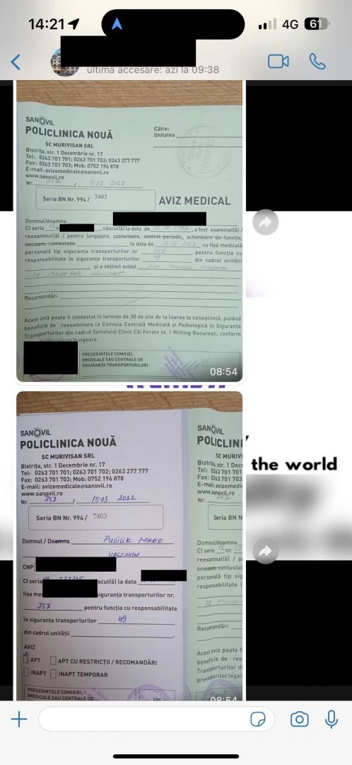 Totuși, peste aproximativ o oră, acesta a primit o poză pe WhatsApp, în care nu se vede integral documentul... Vezi mai jos!