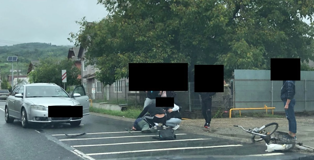 Biciclist lovit de mașină, la intrare în Năsăud (FOTO)