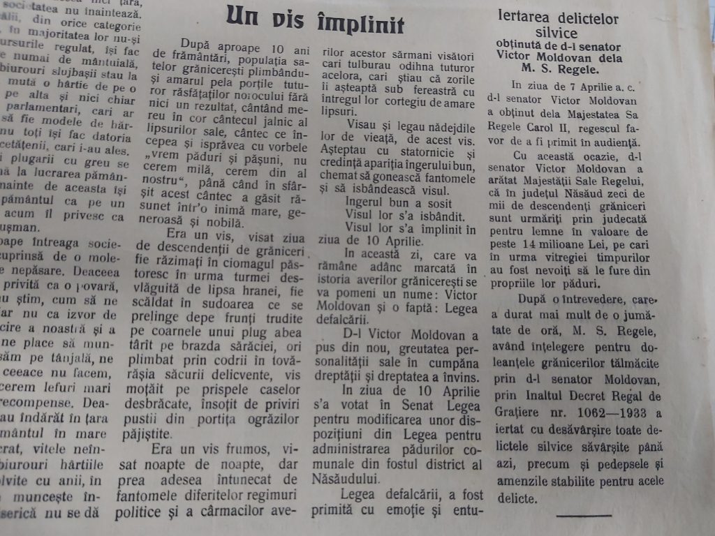 Episodul 2 al proiectului nostru face referire la primul reprezentant al Bistriței într-un parlament al României, cel de după Unirea din 1918. E vorba de avocatul Victor Moldovan. Chiar dacă astăzi, Victor Moldovan, ar fi catalogat drept traseist politic, el trecând pe la trei partide, activitatea sa a fost una lungă, benefică pentru urmașii grănicerilor și nu numai. De asemenea, Moldovan va interveni pe lângă Regele Carol al II-lea, care îi va ierta prin decret regal de faptul că au tăiat din pădurile grănicerești lemn în valoare de 14 milioane de lei- VEZI FACMISIL