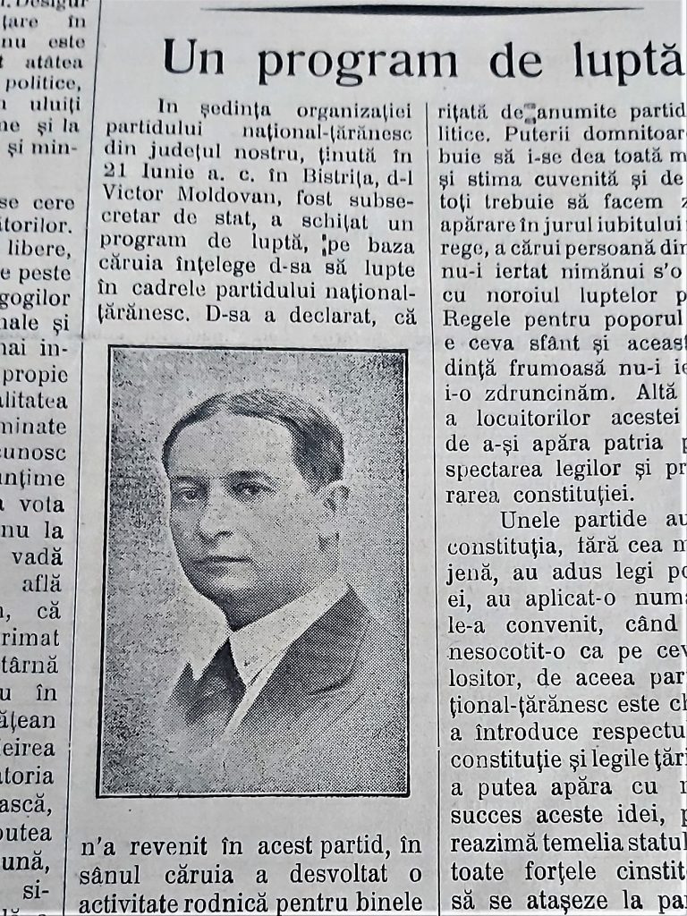 Trebuie știut că Victor Moldovan a fost membru și lider local al Partidului Poporului, format de Mareșalul Averescu, el venind în partidul lui Averescu din PNR pe fondul divulgării unor afaceri necurate şi în contextul unor contradicţii apărute în PNR. Astfel, Victor Moldovan se alătură grupării formate din Vasile Goldiş, Silviu Dragomir, Ioan Lupaş, Ioan Lepădatu şi formează Partidul Poporului, pe care, mai apoi, îl părăseşte dezamăgit de rezultatele slabe de la alegeri şi îşi încearcă norocul în PNŢ, în 1932, după o absenţă de câţiva ani.