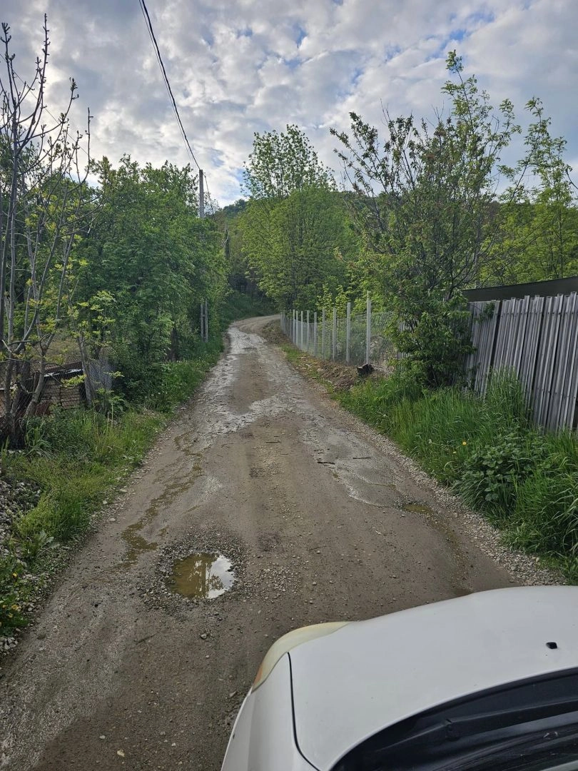 Vrem să vă aducem la cunoștință o serie de ilegalități, inclusiv devierea cursului de apă al unui izvor, în mod expres și deliberat de către un grup de cetățeni, care a contribuit la starea deplorabilă în care se află această stradă datorită coroziunii apei pe suprafața acesteia. De asemenea, menționăm că viața noastră a fost pusă în pericol pe durata iernii, când au fost temperaturi negative, datorită gheții formate pe suprafața carosabilă; această stradă având o înclinare către DN17, cu care se intersectează.