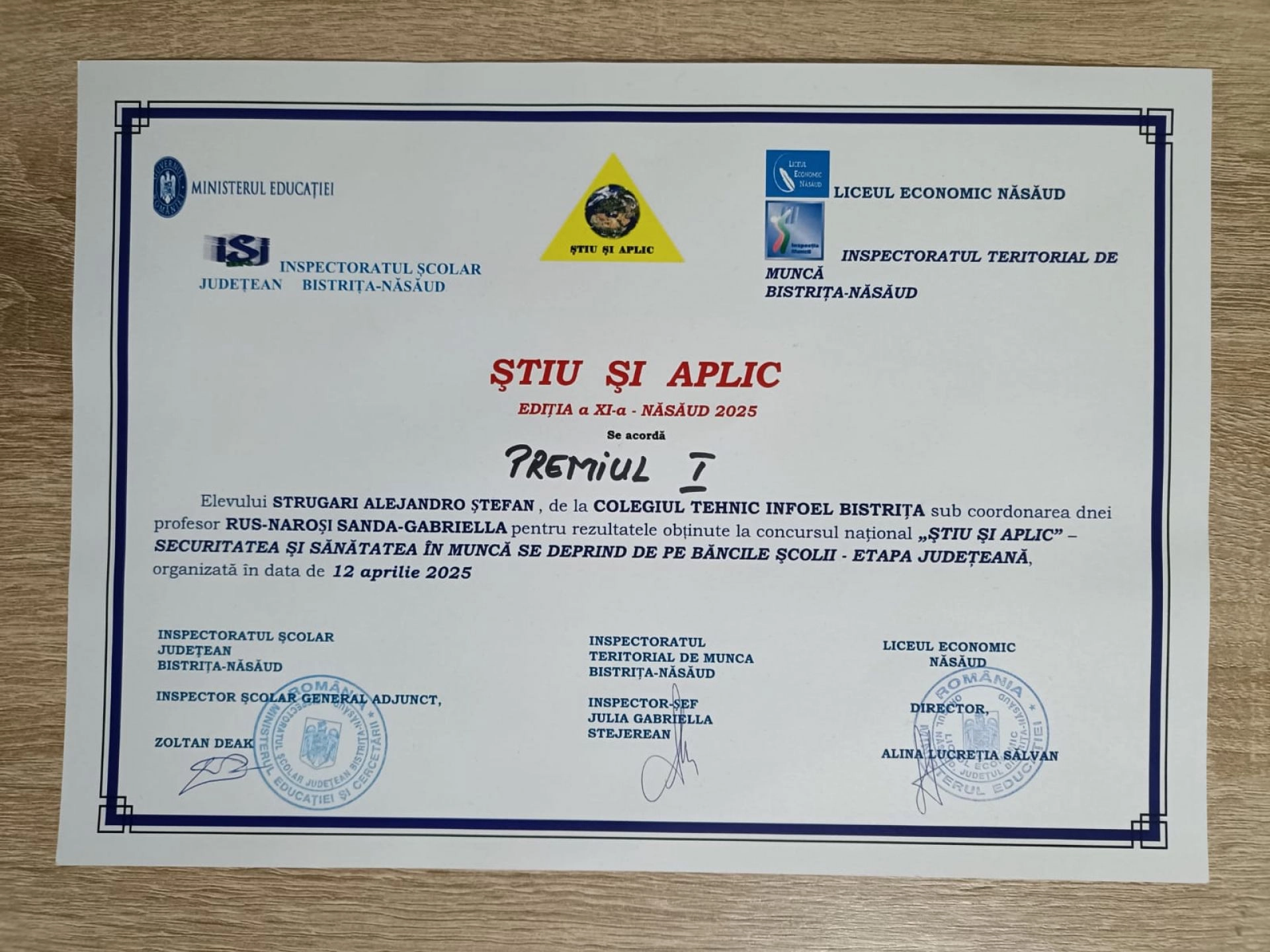 Nu doar Olimpiada Națională de Tehnologii a adus satisfacții pentru Colegiul Tehnic INFOEL, ci și Concursul „ȘTIU ȘI APLIC”. Elevii îndrumați de aceiași profesori, Sanda Gabriela Rus-Naroși și Constantin Corneliu Rusu, au obținut rezultate excelente și la etapa județeană a acestei competiției școlare, desfășurată tot în luna aprilie la Năsăud. Echipele formate din Daniel-Timotei Andreica, Nicolae-Eugen Nat (clasa a XII-a F, calificare: Tehnician în instalații electrice) și Robert Darius Sălăgean, Alejandro-Ștefan Strugari (clasa a X-a G, domeniul electric) au obținut premiul I la etapa județeană.