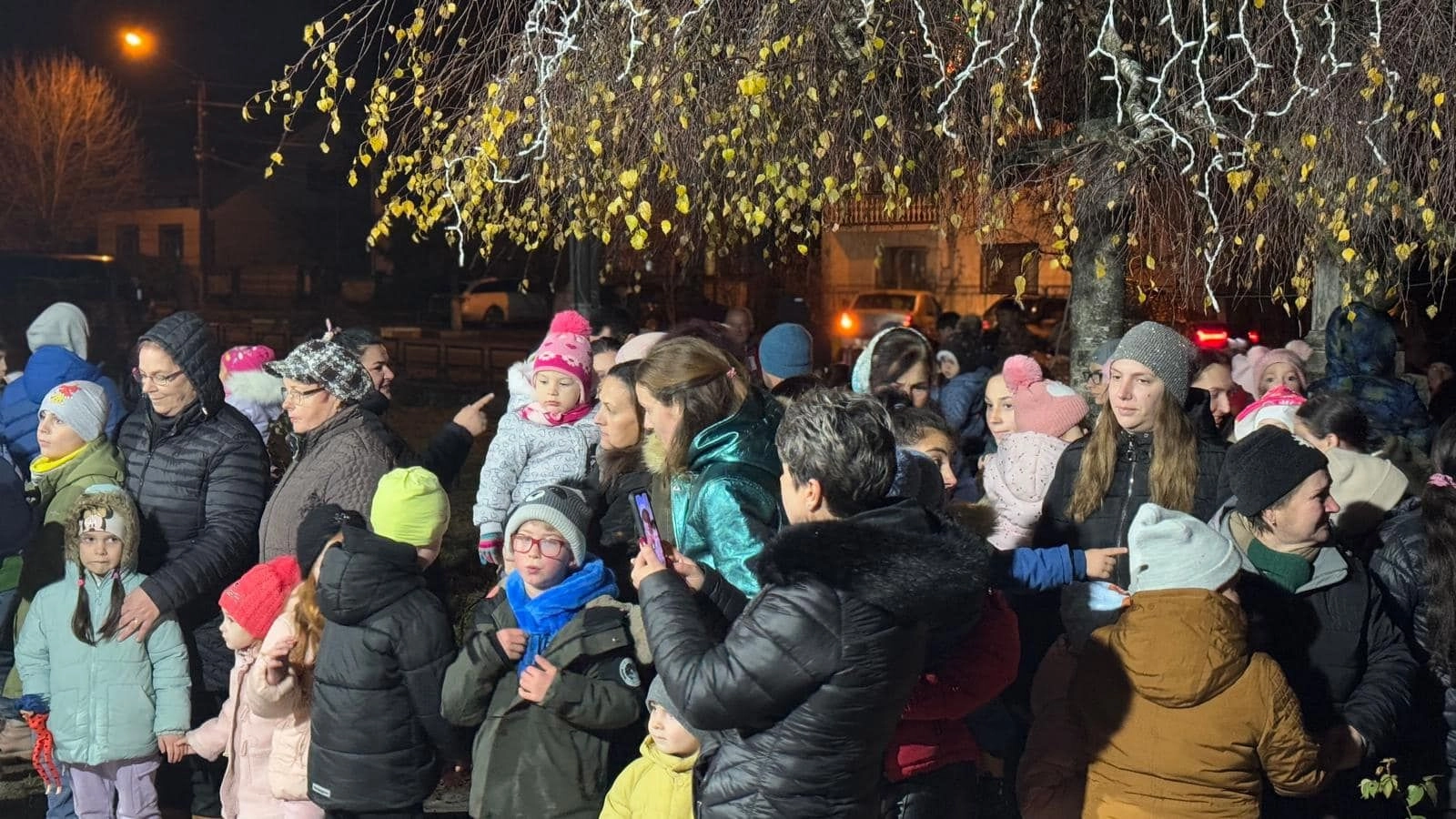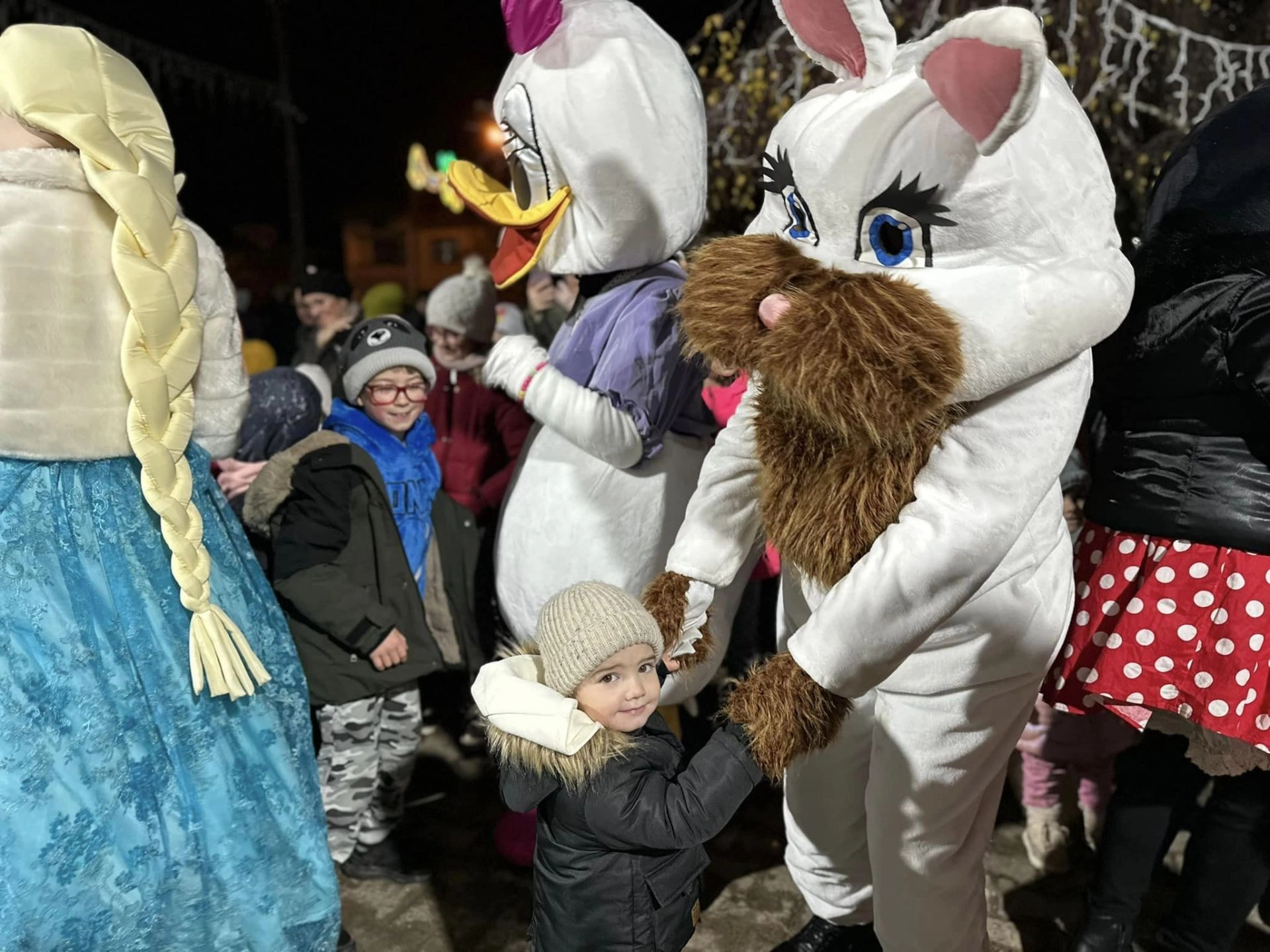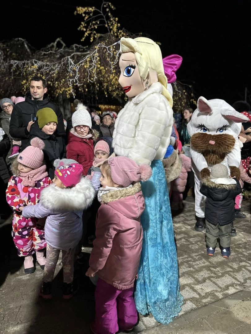 Bucurie pentru copiii din Sigmir. Spectacol, la aprinderea iluminatului festiv