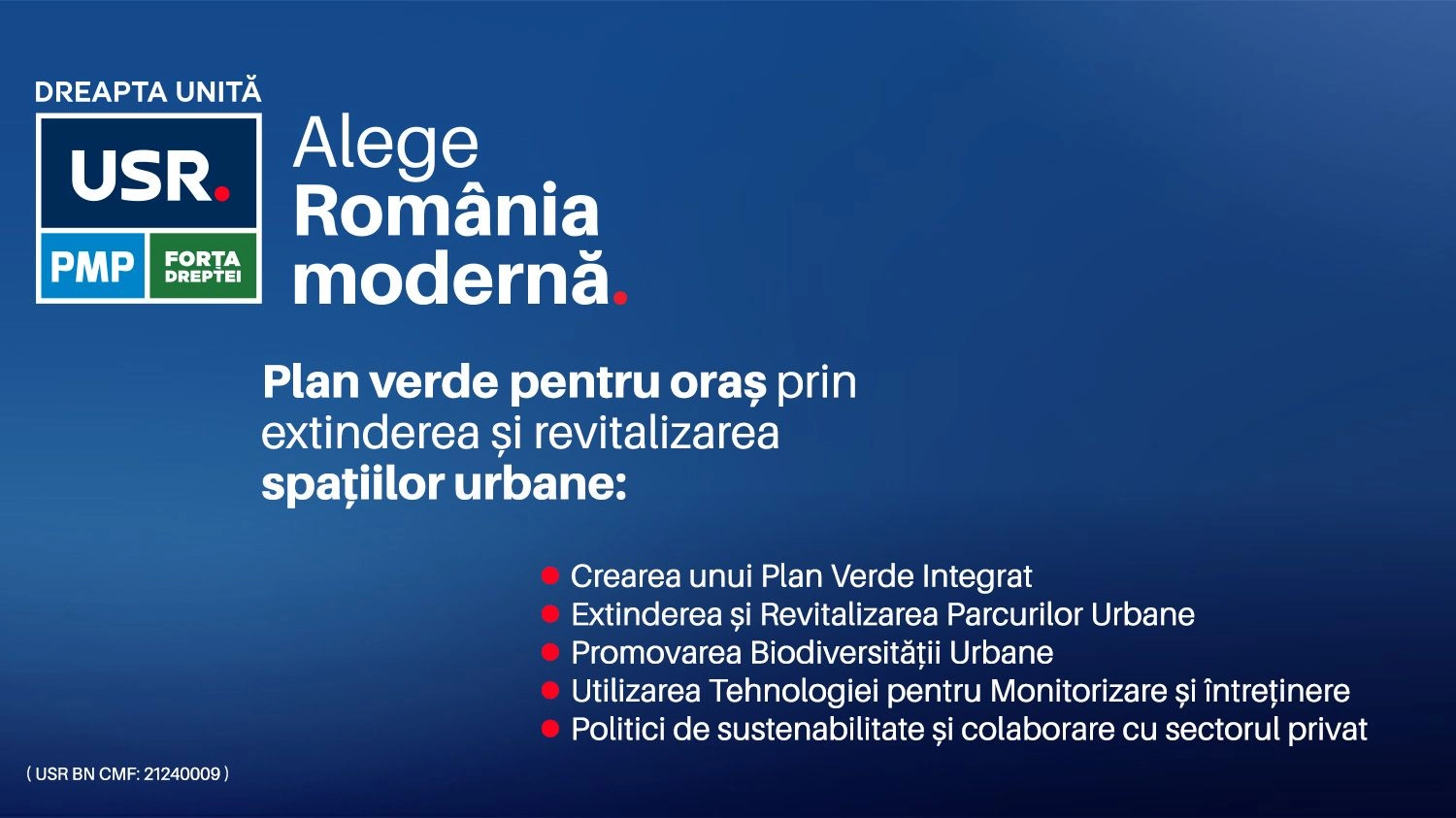 Material de promovare electorală comandat de Uniunea Salvați România, organizația județeană B-N, parte a Aliantei Dreapta Unita USR-PMP-Forta Dreptei, realizat de Prolab Video Marketing SRL CMF: 21240009