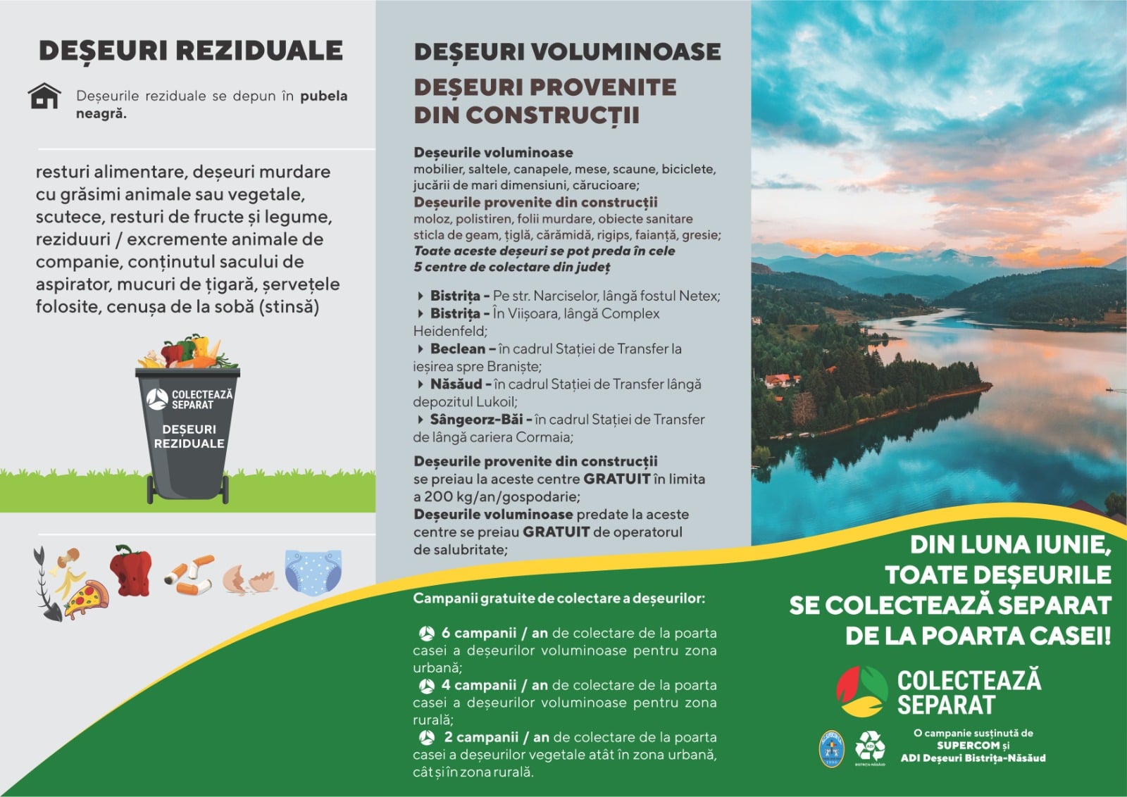“Colectarea din poartă în poartă a deșeurilor pe 4 fracții este una din cele mai importante măsuri pe care le luăm pentru a eficientiza activitatea în gestionarea deșeurilor din județul nostru” transmite Cristian Marius Niculae. “Inspectorii Corpului de Control al A.D.I. Deșeuri Bistrița-Năsăud derulează în aceste zile o campanie de informare adresată cetățenilor ce […]